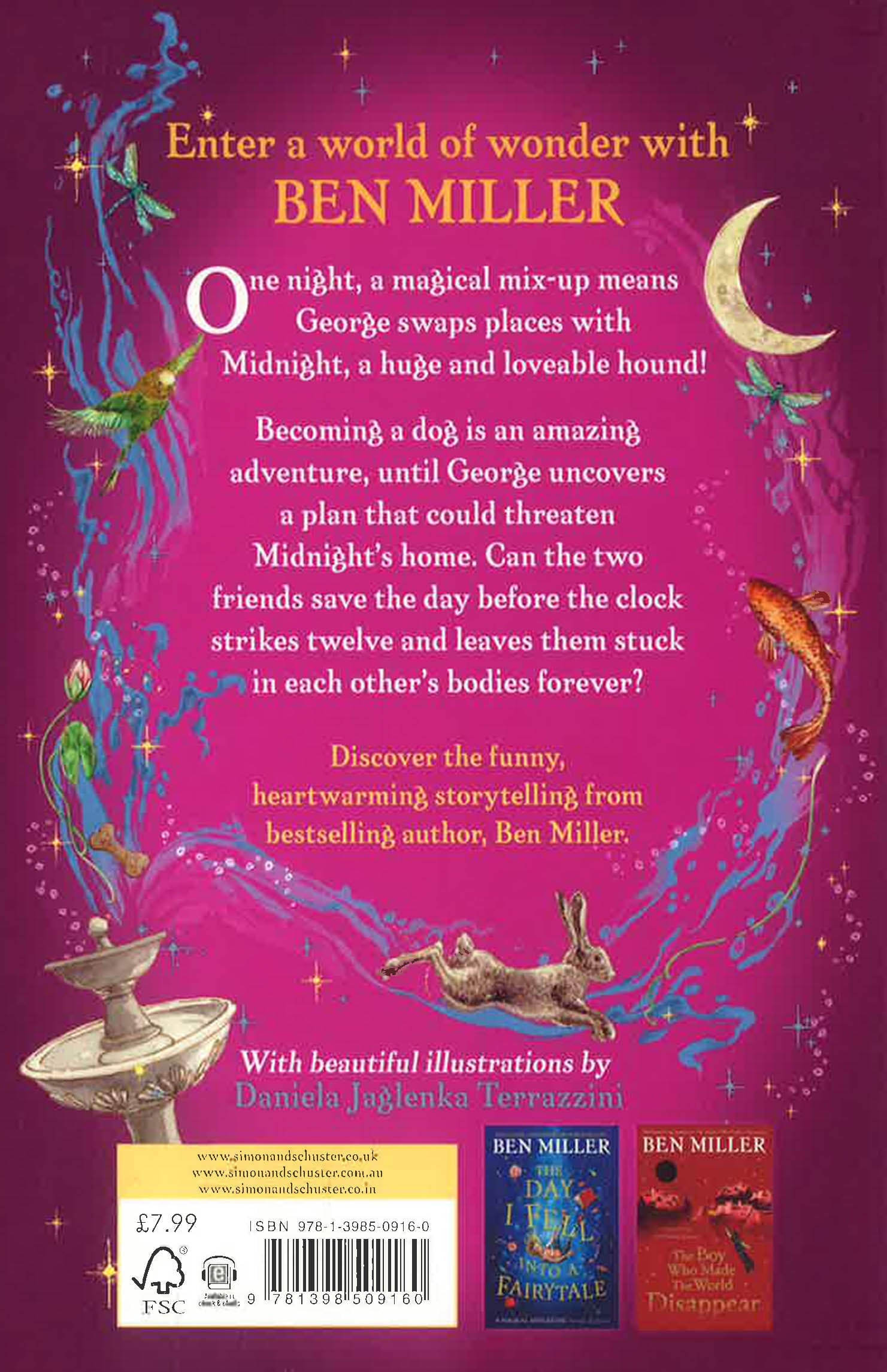 George has always wondered what it's like to be a dog. One night, a magical mix-up with an enchanted fountain means he swaps places with Midnight, a huge and loveable hound! Becoming a dog is an amazing adventure, until George uncovers a plan that could threaten Midnight's home. Can the two friends save the day before the clock strikes twelve and leaves them stuck in each other's bodies forever?