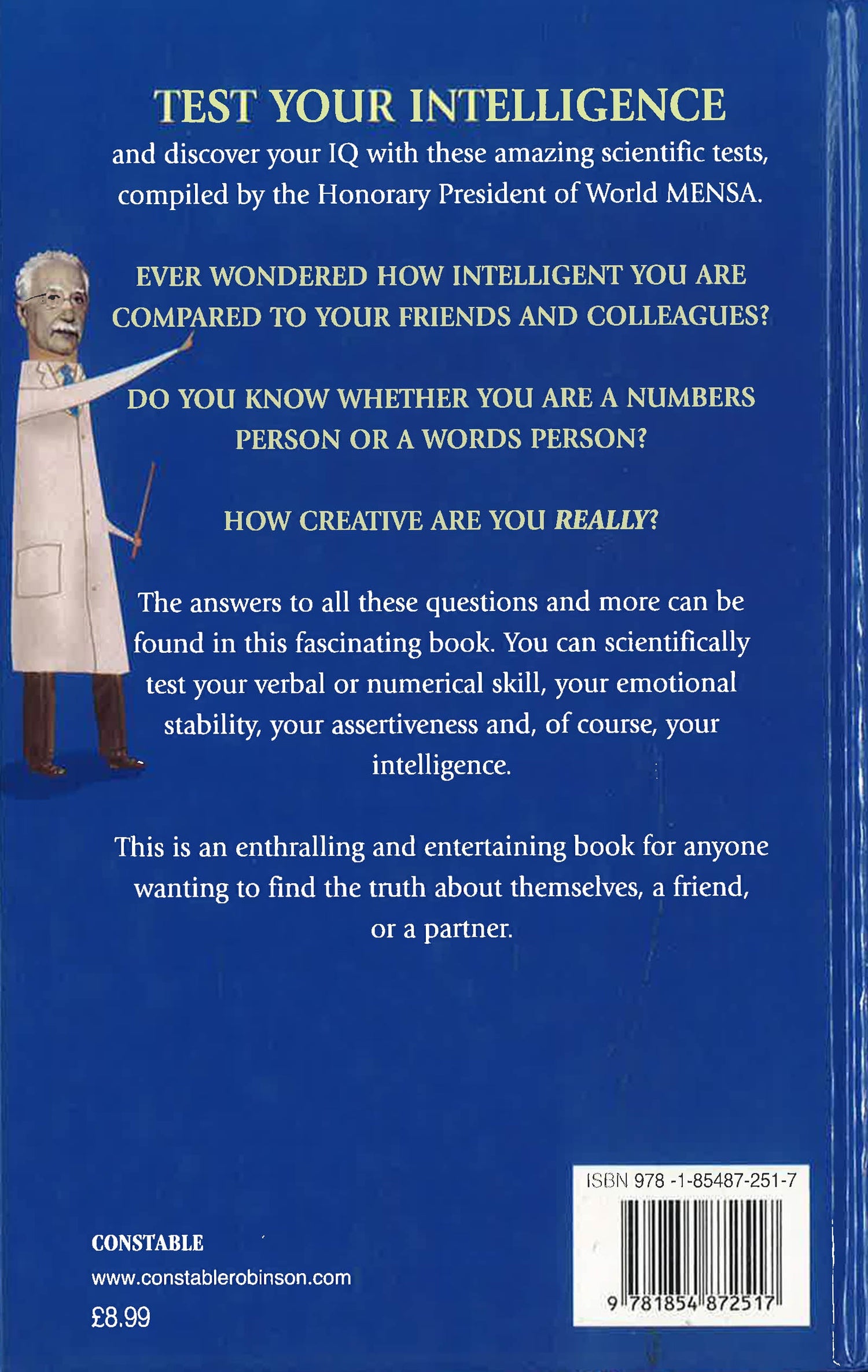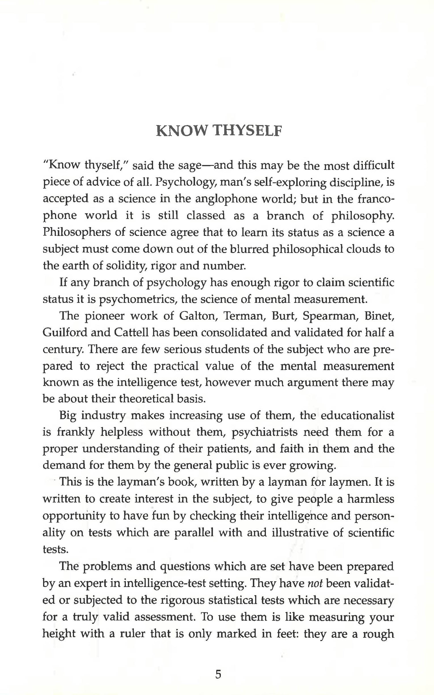 "Know thyself," said the sage - and this may be the most difficult advice of all. The scientific basis of psychology is often debated, with some arguing that it is a branch of philosophy rather than a true science. But psychometrics, the field of mental measurement, is an area which has been of particular interest to business, educationalists and those interested in personal development alike. Have you ever wondered how intelligent you are compared to your friends and colleagues? Do you know whether you are a numbers person or a words person? How creative are you REALLY?The answers to all these questions and more can be found in this fascinating book. You can scientifically test your verbal or numerical skill, your emotional stability, your assertiveness and, of course, your intelligence.
