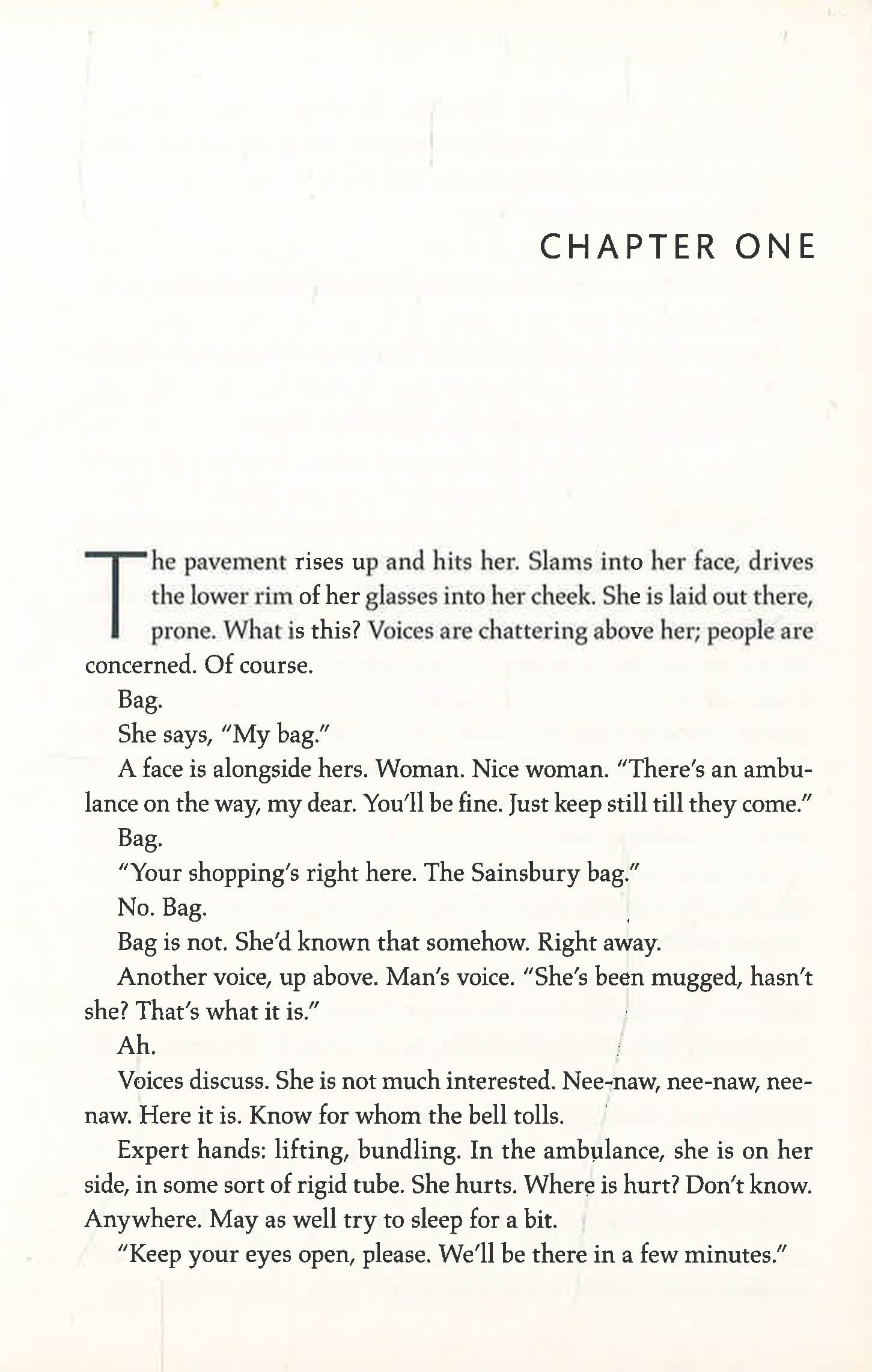 When Charlotte Rainsford, a retired schoolteacher, is accosted by a petty thief on a London street, the consequences ripple across the lives of acquaintances and strangers alike. A marriage unravels after an illicit love affair is revealed through an errant cell phone message; a posh yet financially strapped interior designer meets a business partner who might prove too good to be true; an old-guard historian tries to recapture his youthful vigor with an ill-conceived idea for a TV miniseries; and a middle-aged central European immigrant learns to speak English and reinvents his life with the assistance of some new friends.