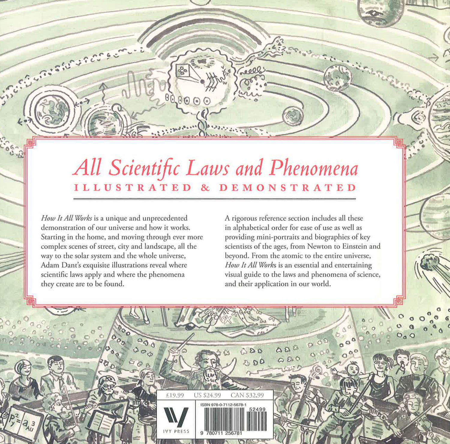 How it All Works illustrates simply how the most interesting and complex named scientific laws and phenomena affect everyone’s daily lives. Using hyper-detailed scene illustrations from the incredible award-winning artist Adam Dant, we start small, with the illustrated science inside your kitchen, before expanding outwards to encompass your garden, street, city, continent, planet, solar system, galaxy and eventually the whole universe.