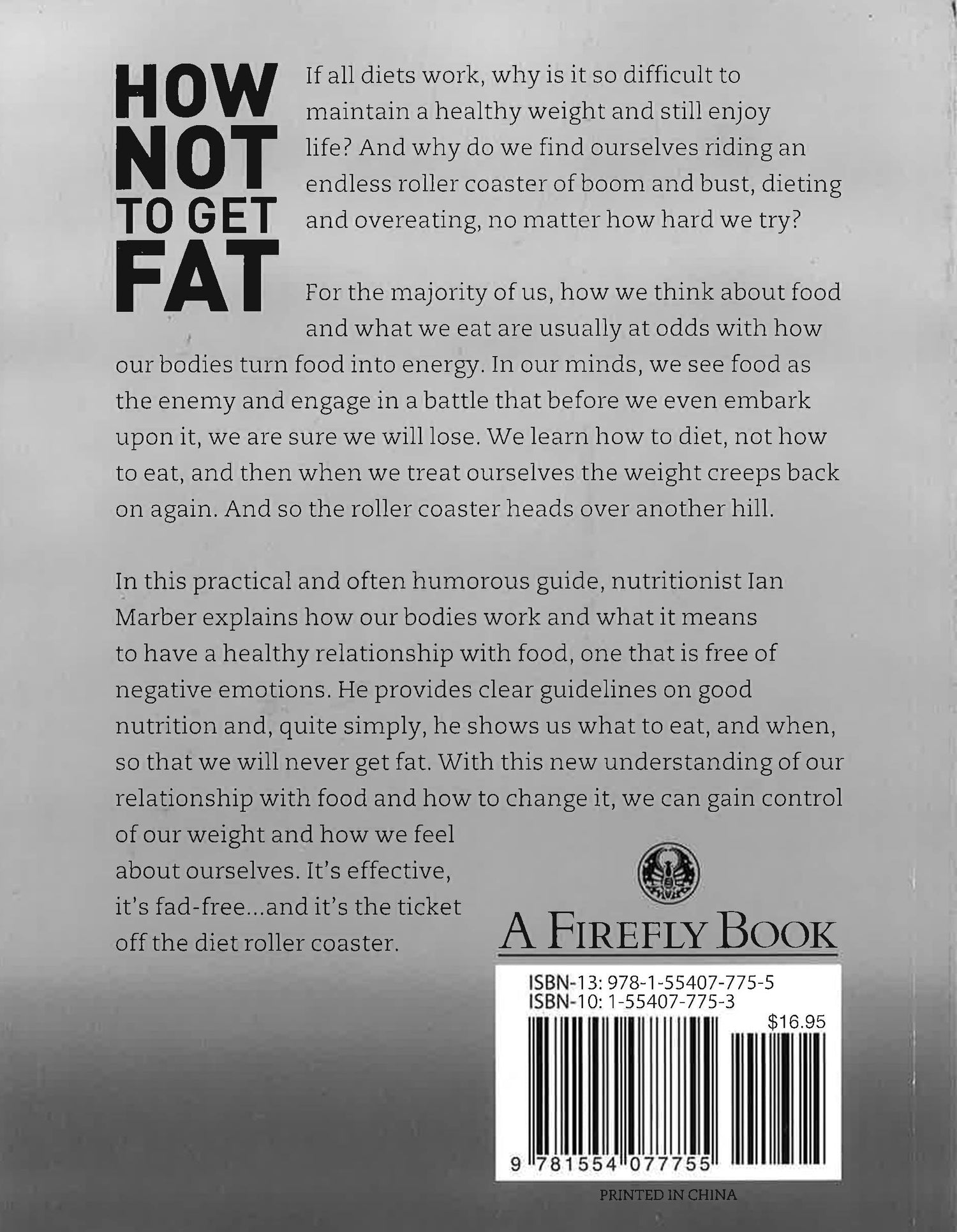 A common-sense guide to a healthy weight: know what to eat and when. Nutritionist Ian Marber believes that few, if any, of us were taught how to eat properly; instead, we were taught how to diet. How Not to Get Fat is about avoiding diets in the first place. It looks closely at how our emotions and actions are usually at odds with the biochemistry of our bodies. By understanding these relationships readers can learn how to satisfy hunger, enjoy good food and minimize cravings. The book is divided into three sections: Section one clearly explains the body's biochemistry -- digestion, glucose, carbohydrates, proteins, fats, metabolism, hunger signals and much more. These are the basis of any successful eating plan. Section two is a fascinating discussion of how thought processes and emotions control a person's ability to keep a healthy weight. It examines the powerful forces that come into play when deciding to eat: habits, social attitudes, genetics, subliminal influences, choices, portion control, gender and more. Section three explains how, armed with a new understanding of how their body works, readers can create a personalized eating plan that addresses their body's biochemical needs, thereby avoiding the emotionally damaging roller coaster of diets. It also sets out simple eating rules that are easy to follow. This is a straightforward and encouraging guide from an expert nutritionist. It is a no-pressure, liberating approach to one of our most basic needs, and proof that prevention is better than cure.