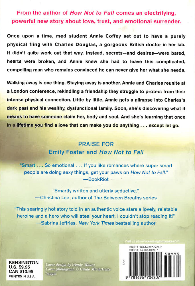 From the author of How Not to Fall comes an electrifying, powerful new story about love, trust, and emotional surrender.Once upon a time, med student Annie Coffey set out to have a purely physical fling with Charles Douglas, a gorgeous British doctor in her lab. It didn't quite work out that way. Instead, secrets--and desires--were bared, hearts were broken, and Annie knew she had to leave this complicated, compelling man who remains convinced he can never give her what she needs.Walking away is one thing. Staying away is another. Annie and Charles reunite at a London conference, rekindling a friendship they struggle to protect from their intense physical connection. Little by little, Annie gets a glimpse into Charles's dark past and his wealthy, dysfunctional family. Soon, she's discovering what it means to have someone claim her, body and soul. And she's learning that once in a lifetime you find a love that can make you do anything...except let go.