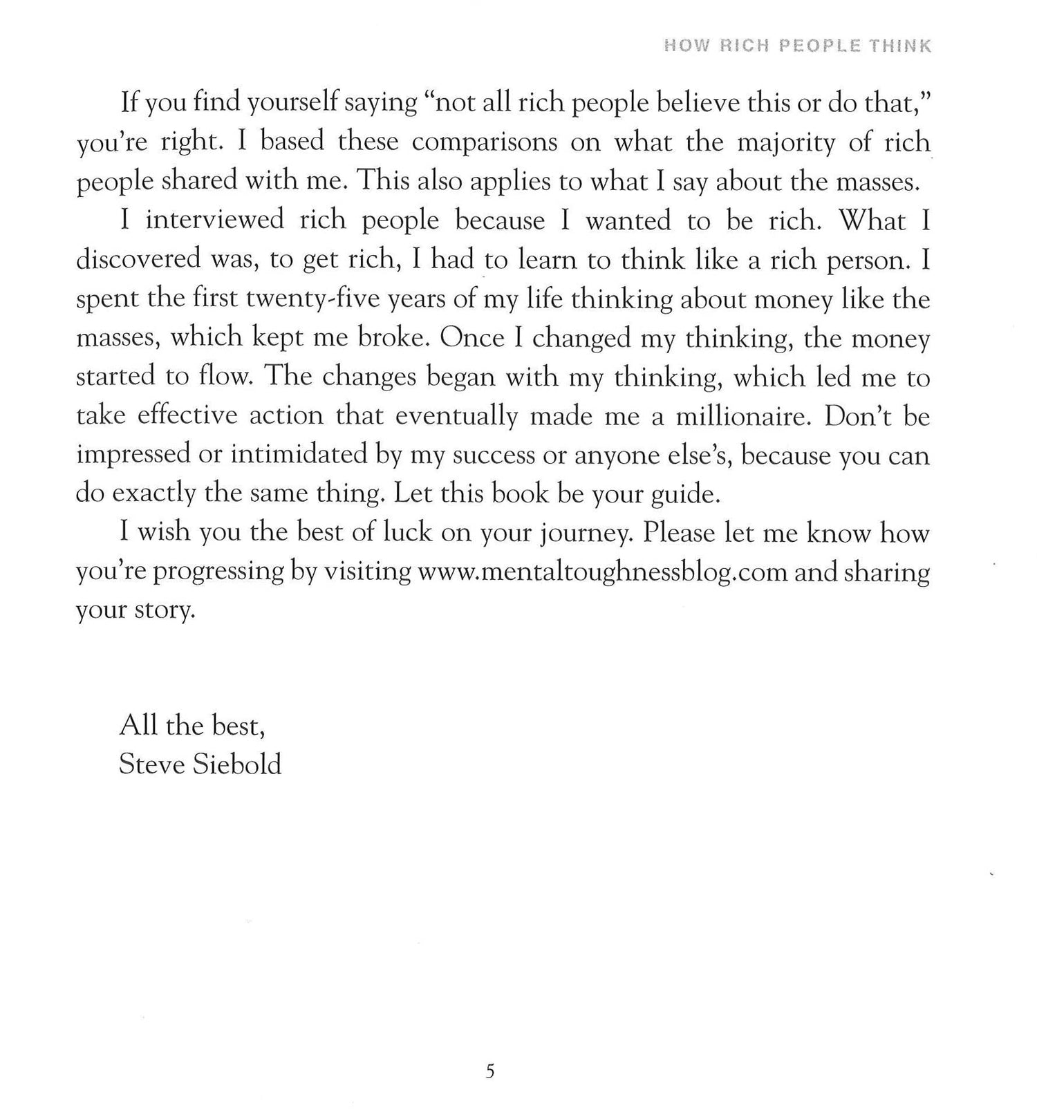 The secret is not in the mechanics of money, but in the level of thinking that generates it. Once you learn to embrace this,In How Rich People Think, author Steve Siebold compares the thoughts, habits and philosophies of the middle class to the world class when it comes to wealth. If you follow the beliefs, philosophies, and strategies of the rich and take action, you have a legitimate shot at becoming a millionaire. The secret is not in the mechanics of money, but in the level of thinking that generates it. Once you learn to embrace this, your earning potential is limitless.