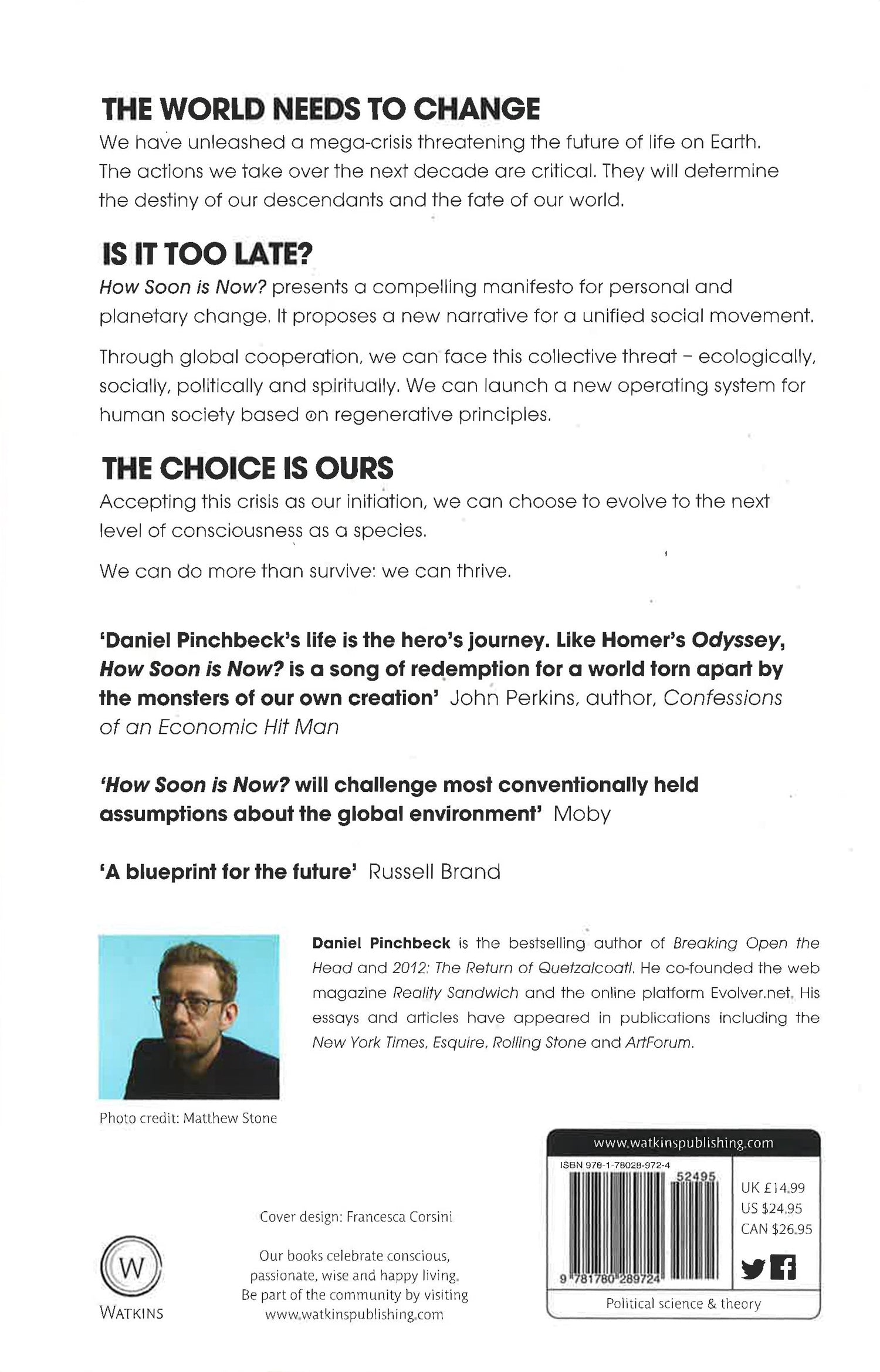 Drawing on a huge range of resources and references Daniel Pinchbeck presents a compelling argument for the need for change on a global basis - it is only when we see ourselves as one global nation that this change can occur. The central thesis is that humanity has self-willed the ecological crisis in order to bring about the necessary conditions for transcendence of our current state of being, by undergoing an initiatory ordeal on a planetary scale. This collective ordeal is necessary for us to evolve from one state of being - our current level of consciousness - to the next. By passing through this initiation we realize ourselves as one unified being, a planetary super-organism in a symbiotic relationship with the Earth's ecology and the entire web of life. Covering everything from energy and agriculture, to culture, politics, media and ideology, Pinchbeck's book is ultimately about the nature of the human soul and the future of our current world. He calls for an intentional and consciously designed metamorphosis of our current systems. which transform capitalist and exclusive structures into participatory, democratic, and inclusive ones, based on an integration of Eastern metaphysics, social ecology, and radical political thought.*This book may have remainder mark*