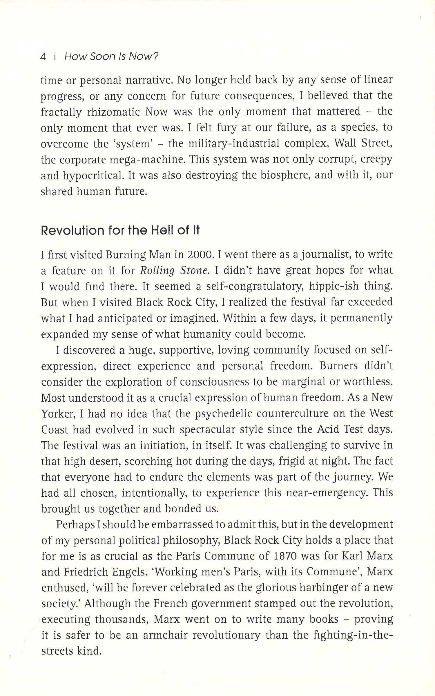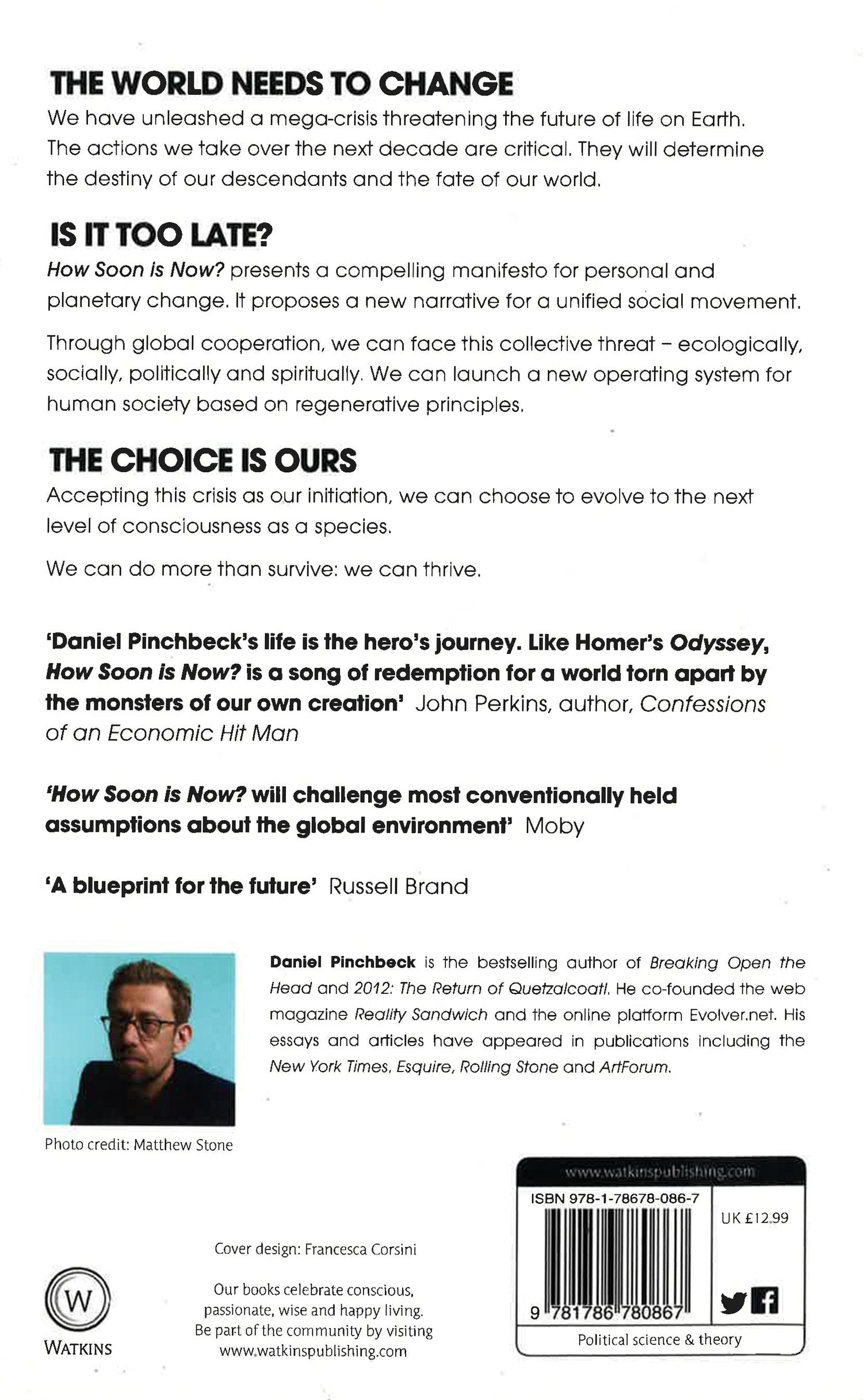 "How Soon is Now? will challenge most conventionally held assumptions about the global environment" MobyThe World Needs to ChangeWe have unleashed a mega-crisis threatening the future of life on Earth. The actions we take over the next decade are critical. They will determine the destiny of our descendants and the fate of our world.Is It Too Late?How Soon is Now? presents a compelling manifesto for personal and planetary change. It proposes a new narrative for a unified social movement. Through global cooperation, we can face this collective threat- ecologically, socially, politically, and spiritually. We can launch a new operating system for human society based on regenerative principles.The Choice Is OursAccepting this crisis as our initiation, we can choose to evolve to the next level of consciousness as a species. We can do more than survive: we can thrive."A blueprint for the future" Russell Brand