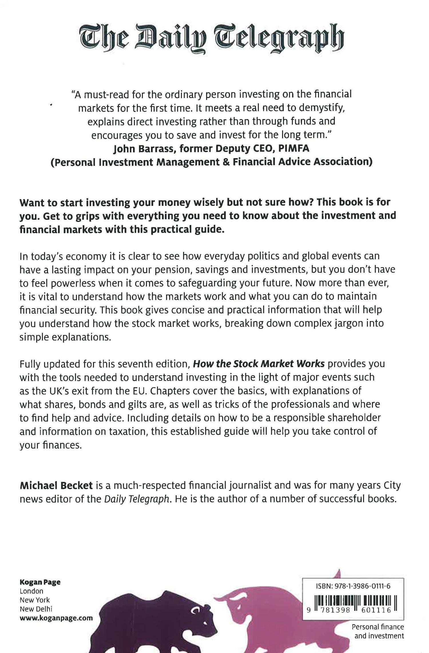 Want to start investing your money wisely but not sure how? This book is for you. Get to grips with everything you need to know about the investment and financial markets with this practical guide. In today's economy it is clear to see how everyday politics and global events can have a lasting impact on your pension, savings and investments, but you don't have to feel powerless when it comes to safeguarding your future. Now more than ever, it is vital to understand how the markets work and what you can do to maintain financial security. This book gives concise and practical information which will help you understand how the stock market works, breaking down complex jargon to simple explanations. Fully updated for this seventh edition, How the Stock Market Works provides you with the tools needed to understand investing in the light of major events such as the UK's exit from the EU. Chapters cover the basics from explanations of shares, bonds and gilts and range to where to find help and advice when needed. With guidance on how to be a responsible shareholder and information on the taxation regime, this established guide will help you take control of your finances.