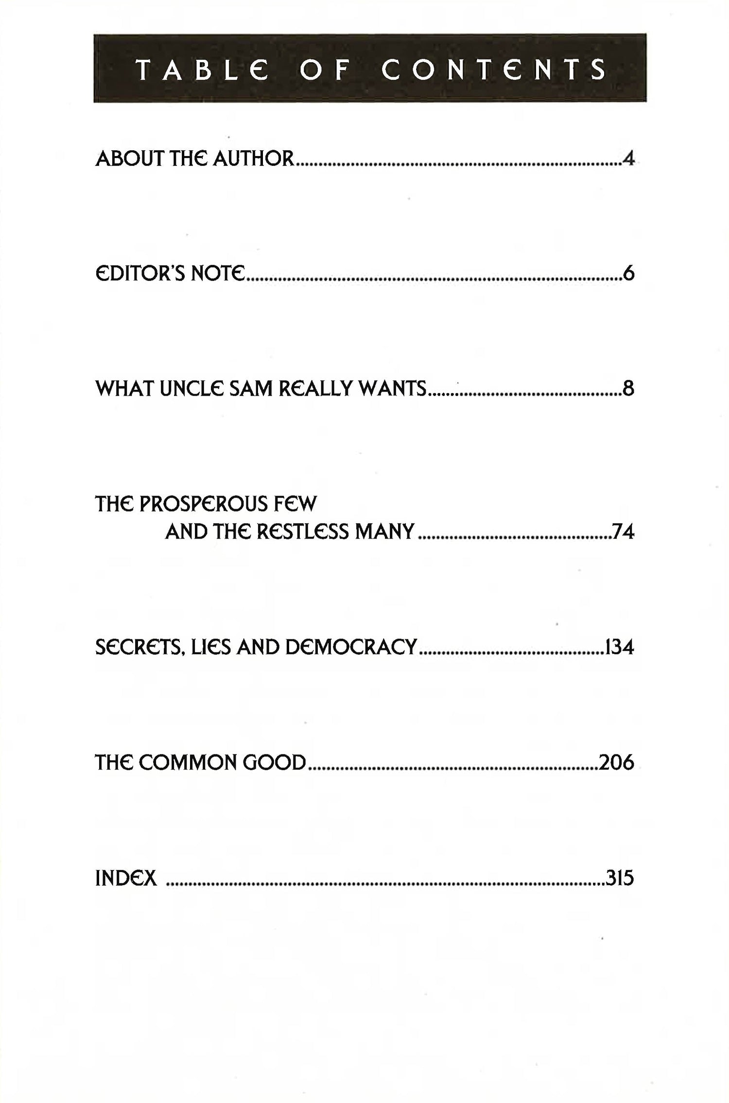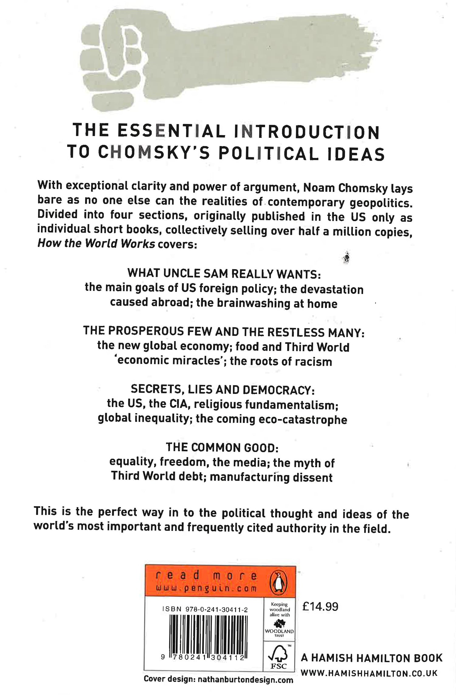 The Essential introduction to chomsky's political ideas. With exceptional clarity and power of argument, Noam Chomsky Lays bare as no one else can the realities of contemporary geopolitics. Divided into four sections, originally published in the US only as individual short books, collectively selling over half a milllion copies.