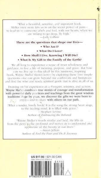 We all long to experience a sense of inner wholeness and guidance, but today's notions of healing and recovery too often keep us focused on our brokenness, on our deficiencies rather than our strengths. Wayne Muller's luminous new book gently guides us to the place where we are already perfect, already blessed with the wisdom we need to live a life of meaning, purpose and grace.He starts, as do so many spiritual teachers, with simple questions: Who am I? What do I love? How shall I live, knowing I will die? What is my gift to the family of the earth? He then takes us deeper, exploring each question through transformative true stories. We meet men and women--Wayne's neighbors, friends, patients--who have discovered love, courage, and kindness even in the midst of sorrow and loss. And through them we glimpse that relentless spark of spiritual magic that burns within each of us.Woven throughout are contemplations, daily practices, poems, and teachings from the great wisdom teachings. Page by page, we become more awake to the joy and mystery of this precious human life, and to the unique gifts every one of us has to offer the world. *This book may have remainder mark.