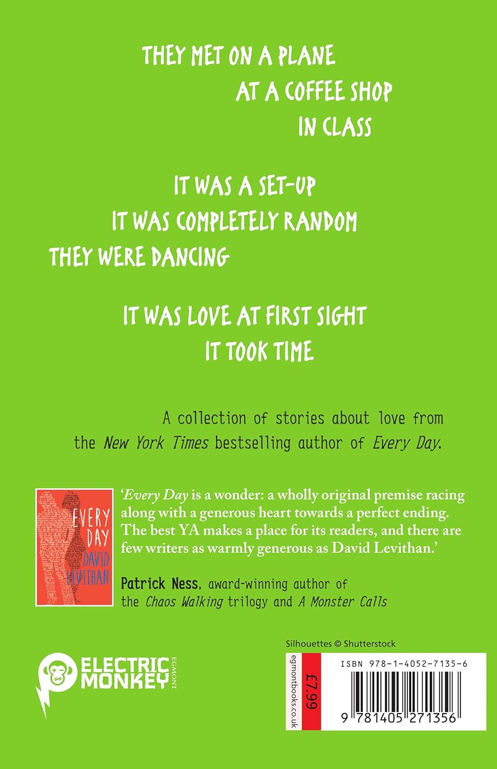 A collection of stories about love from the New York Times bestselling author of Every Day and Two Boys Kissing. They met on a plane / at Starbucks / in class. It was a set-up / it was completely random / they were dancing. It was love at first sight / it took time / it was a disaster! Love is a complicated, addictive, volatile, scary, wonderful thing. Many of the stories in this collection started out as gifts for the author's friends. From the happy-ever-after to the unrequited, they explore the many aspects of the emotion that has at some time turned us all inside out and upside down. David Levithan is no stranger to exploring love in all its complexity and variety as showcased in Boy Meets Boy, Every Day, Another Day, and Two Boys Kissing. 'Every Day is a wonder: a wholly original premise racing along with a generous heart towards a perfect ending. The best YA makes a place for its readers, and there are few writers as warmly generous as David Levithan.' Patrick Ness, award-winning author of the Chaos Walking trilogy and A Monster Calls David is the New York Times best-selling author of Boy Meets Boy and Marly's Ghost.