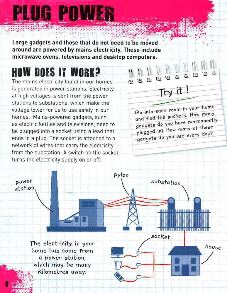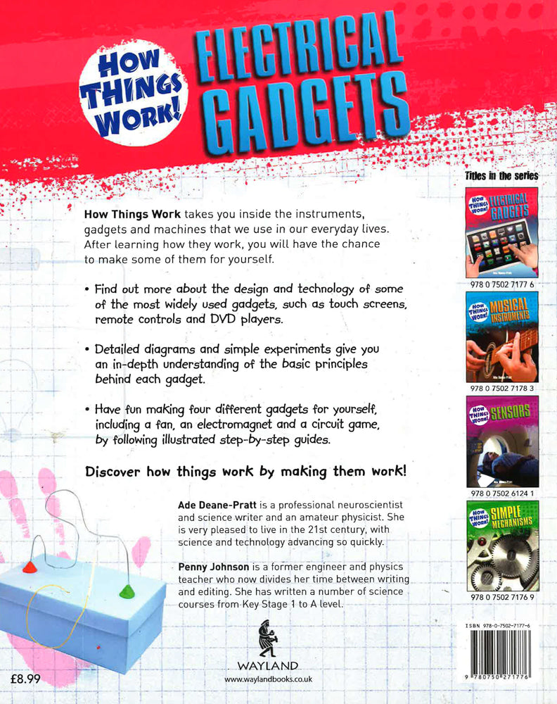 A cross-curricular series focusing on the mechanisms and science behind everyday objects, combined with activities and investigations.Combining Science and Design and Technology, this title examines the technology of the electrical gadgets we use every day. A scientific explanation with the help of annotated diagrams and illustrations is followed by examples of gadgets that make use of the technology. Gadgets and technologies examined and explained include touch screens, remote controls, DVD players and photo copiers.
