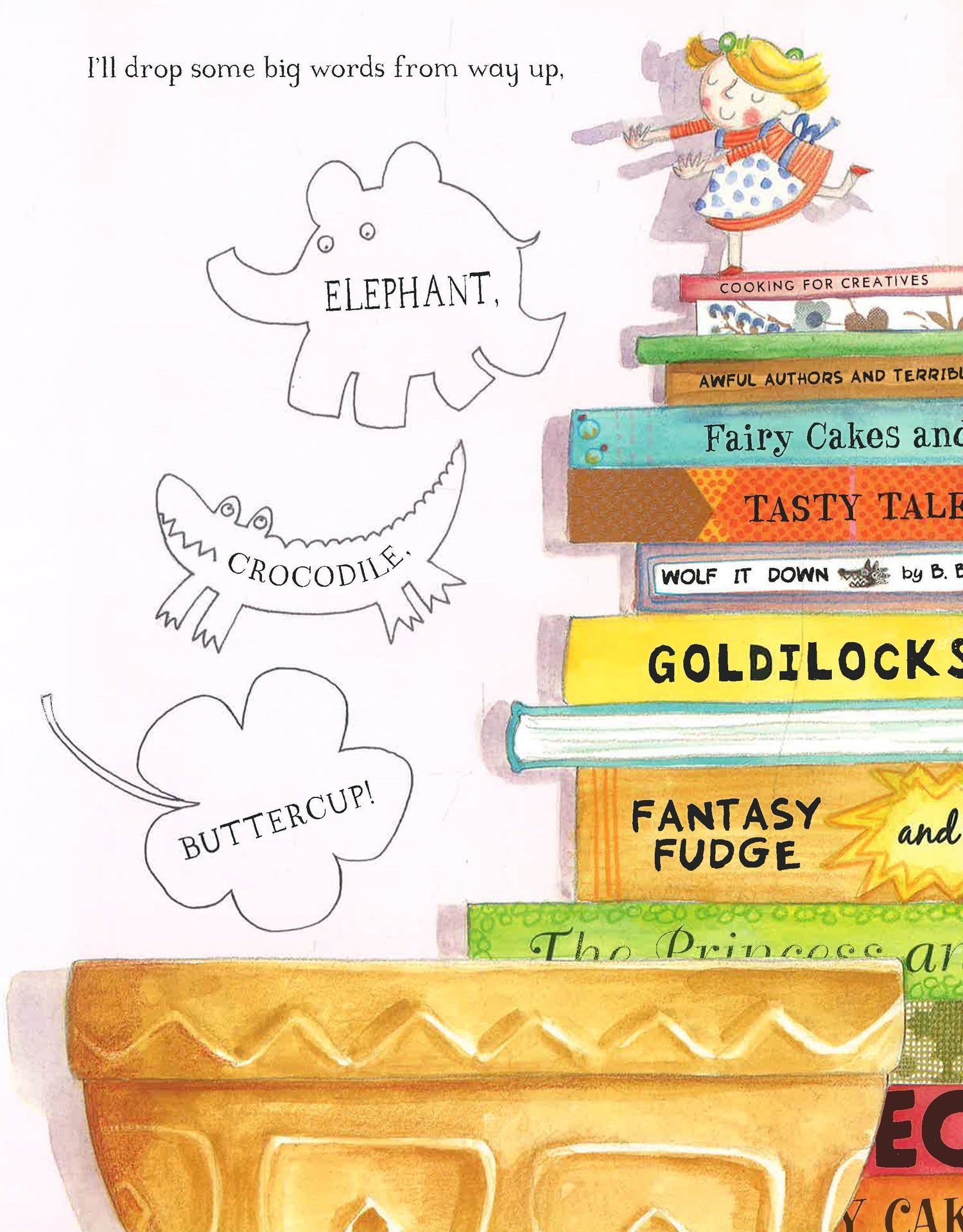 Discover the secret ingredients to crafting a truly delicious story! Turn up the heat- the bubbles quicken. And then my plot begins to thicken. Join one lucky little girl as she learns the recipe for making the perfect story. A pinch of good, a dash of bad, some big words, and carefully cut out characters all provide the ingredients for a truly delicious read!