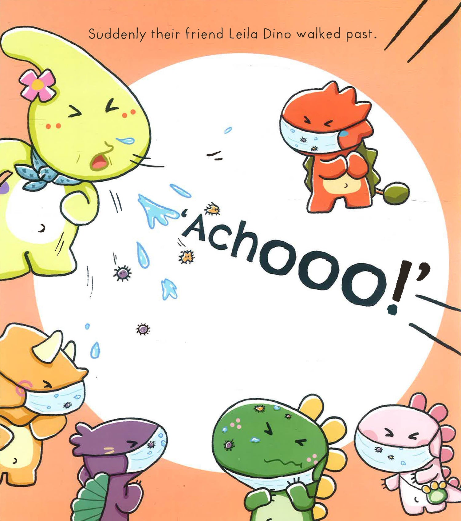Danny Dino is not feeling well. What can he do to protect himself and others from getting sick? Dr Pterosaur tells Danny Dino and his friends how to prevent the spread of germs and bugs through correct hand washing, and other useful tips. Can you do the seven step super hand wash just like Danny Dino?