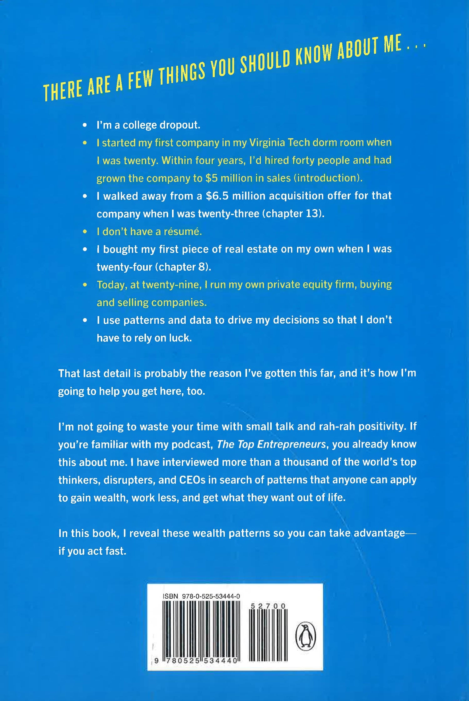 Now, I make more than $100,000 in passive income every month, while also running my own private equity firm and hosting The Top Entrepreneurs podcast, which has more than 10 million downloads. This book will show you how I went from college dropout to member of the New Rich. And I'm holding nothing back. You'll see my tax returns, my profit and loss statements, my email negotiations when buying and selling companies.