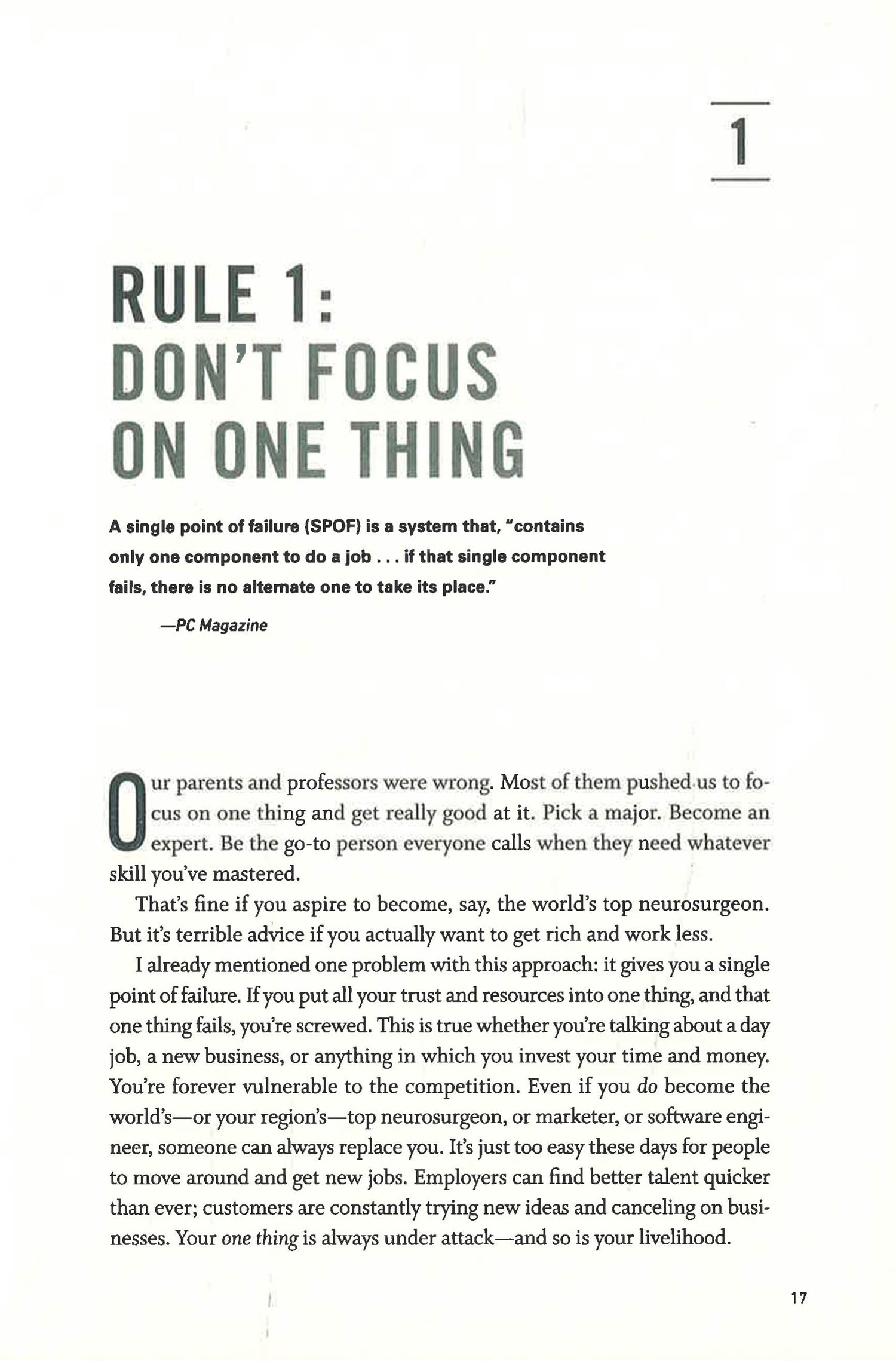1.Focus on one skill: Wrong. Don't cultivate one great skill to get ahead. In today's business world, success goes to the multitaskers.