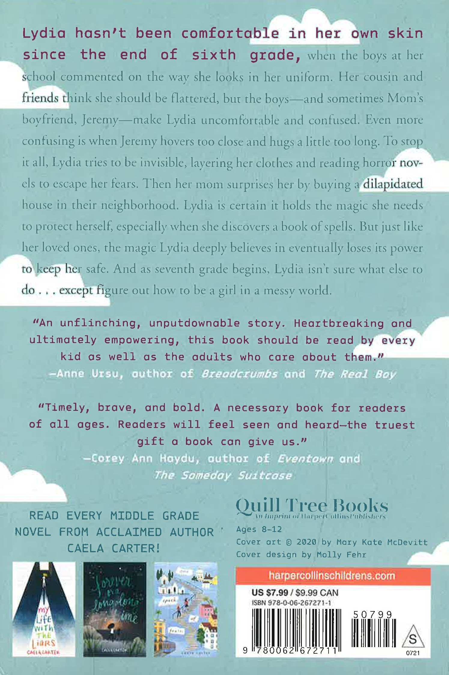 Lydia hasn’t felt comfortable in her own skin since the boys at her school started commenting on the way she looks in her uniform. Her cousin and friends think she should be flattered, but the boys—and sometimes her mom’s boyfriend, Jeremy—make Lydia uncomfortable and confused. Even more confusing is when Jeremy hovers too close and hugs a little too long.