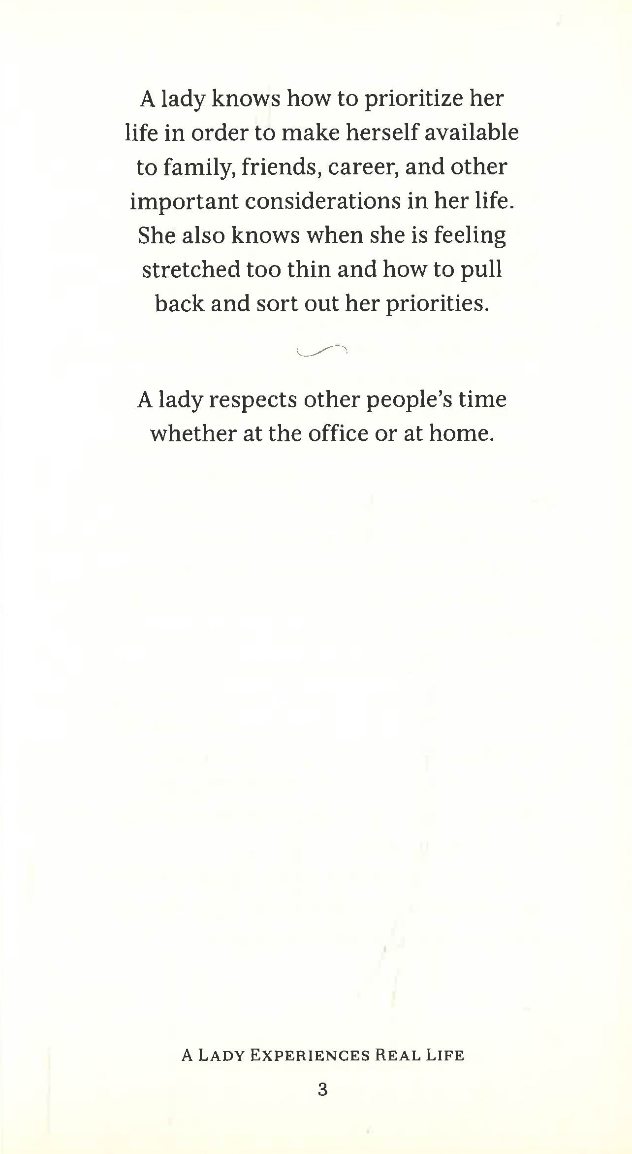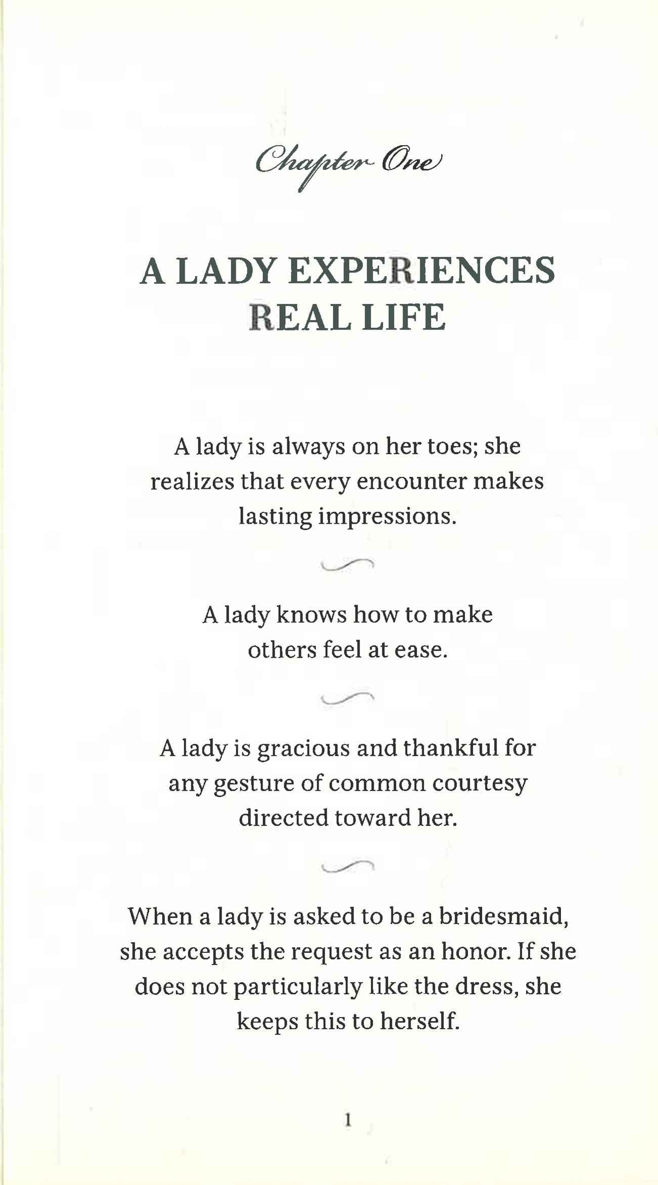 Becoming a lady is a lifelong exercise in refining etiquette, social interaction, and personal discipline. It all continues here.