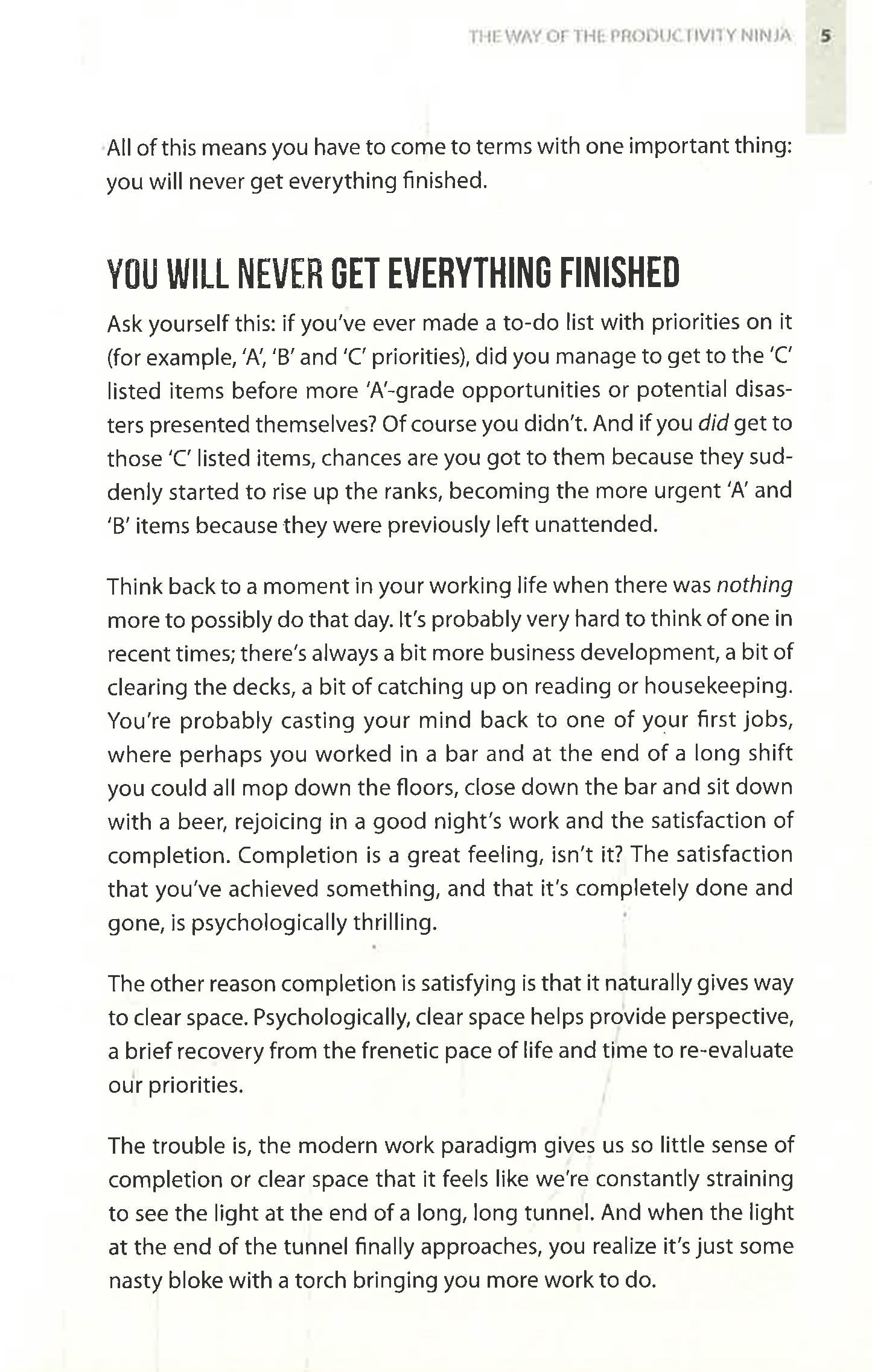 In the age of information overload, traditional time management techniques simply don't cut it anymore. Using techniques including Ruthlessness, Mindfulness, Zen-like Calm and Stealth & Camouflage, this fully revised new edition of How to be a Productivity Ninja offers a fun and accessible guide to working smarter, getting more done and learning to love what you do again.