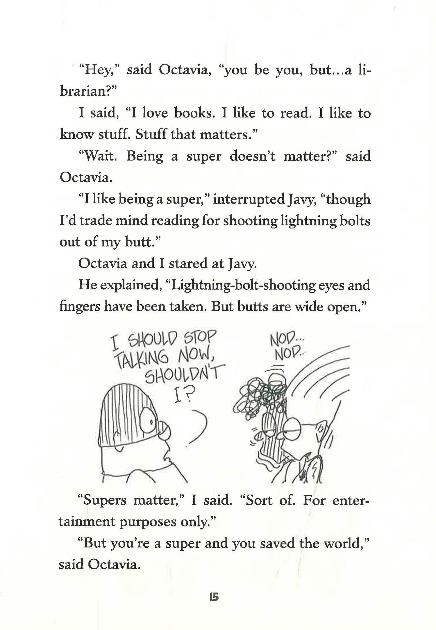 But when his library is suddenly attacked by robot ninjas and he sees his boss leap into battle, Victor learns that librarians are actually a secret league working to bring order to the whole world. It all sounds wonderful to Victor...until he finds out that his friends are planning to destroy the librarians' plan for peace. Who's right and who's wrong? Sometimes it's hard to tell if you're a good guy...or a supervillain.