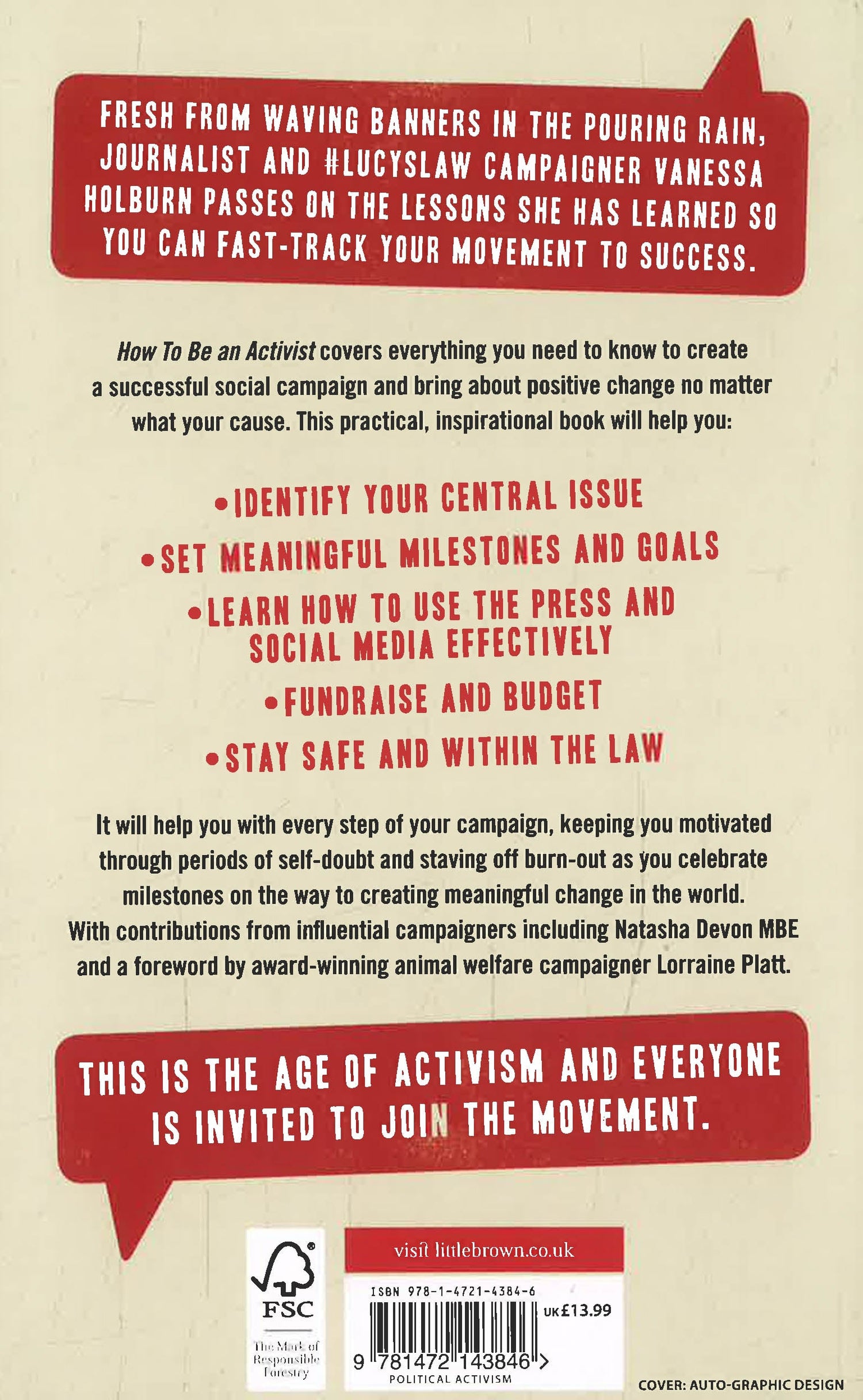 From experienced campaigner Vanessa Holburn and with a foreword by award-winning animal welfare campaigner Lorraine Platt, this is the essential guide to activism. 'Essential reading for anyone looking to start a grassroots campaign - and useful bedtime reading for some of our political parties too' - Hannah Beckerman, GuardianHow To Be an Activist covers everything you need to know to create a successful social campaign and bring about positive change no matter what your cause. This practical, inspirational book covers topics ranging from identifying your central issue and setting meaningful milestones and goals, to learning how to use the media effectively and stay safe and within the law. It will help you with every step of your campaign, keeping you motivated through periods of self-doubt and staving off burnout as you celebrate milestones on the way to creating meaningful change in the world. With contributions from influential campaigners including Natasha Devon MBE.Fresh from waving banners in the pouring rain, journalist and campaigner Vanessa Holburn passes on the lessons she has learned so the reader can fast track their movement to success. This is the age of activism and everyone is invited to join the movement.
