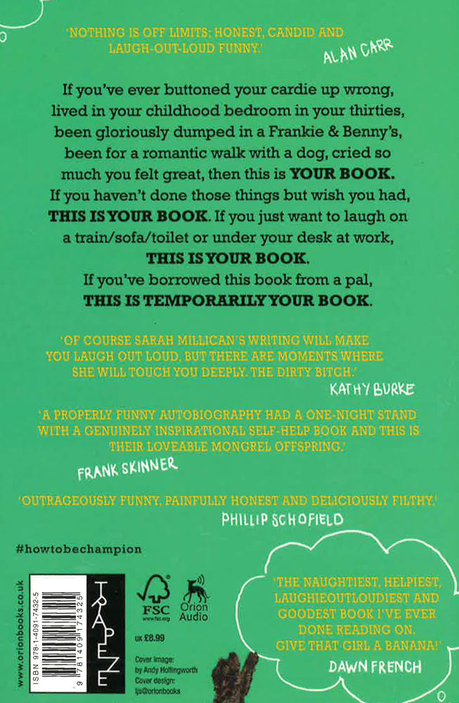 Hilarious, heartwarming and inspirational, this is the number 1 Sunday Times bestselling autobiography by comedian Sarah Millican. The funniest book of the year! *****'The naughtiest, helpiest, laughieoutloudiest and goodest book I've ever done reading on. Give that girl a banana!' DAWN FRENCH SARAH MILLICAN'S AUTOBIOGRAPHY WILL MAKE YOU LAUGH, FEEL NORMAL AND PROBABLY SNIFF YOUR LEGGINGS. Part autobiography, part self help, part confession, part celebration of being a common-or-garden woman, part collection of synonyms for nunny, Sarah Millican's debut book delves into her super normal life with daft stories, funny tales and proper advice on how to get past life's blips - like being good at school but not good at friends, the excitement of IBS and how to blossom post divorce. If you've ever worn glasses at the age of six, worn an off-the-shoulder gown with no confidence, been contacted by an old school bully, lived in your childhood bedroom in your thirties, been gloriously dumped in a Frankie and Benny's, cried so much you felt great, been for a romantic walk with a dog, worn leggings two days in a row even though they smelt of wee from a distance, then this is YOUR BOOK. If you haven't done those things but wish you had, THIS IS YOUR BOOK. If you just want to laugh on a train/sofa/toilet or under your desk at work, THIS IS YOUR BOOK. 'Of course Sarah Millican's book will make you laugh out loud, but there are moments where she will touch you deeply. The dirty bitch.' KATHY BURKE
