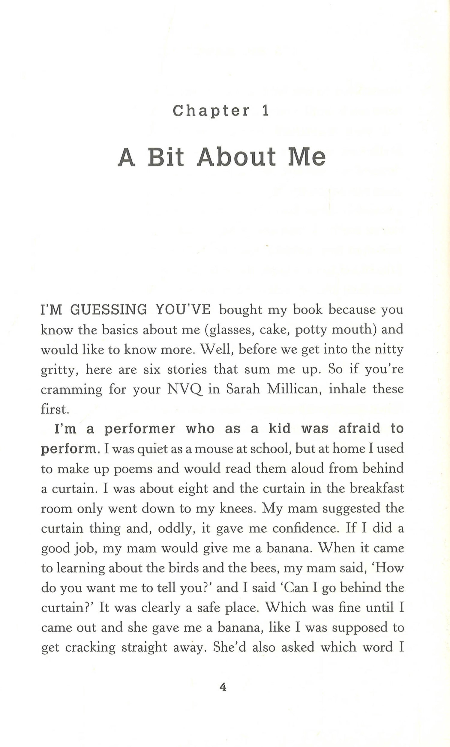 Part autobiography, part self help, part confession, part celebration of being a common-or-garden woman, part collection of synonyms for nunny, Sarah Millican's debut book delves into her super normal life with daft stories, funny tales and proper advice on how to get past life's blips - like being good at school but not good at friends, the excitement of IBS and how to blossom post divorce.