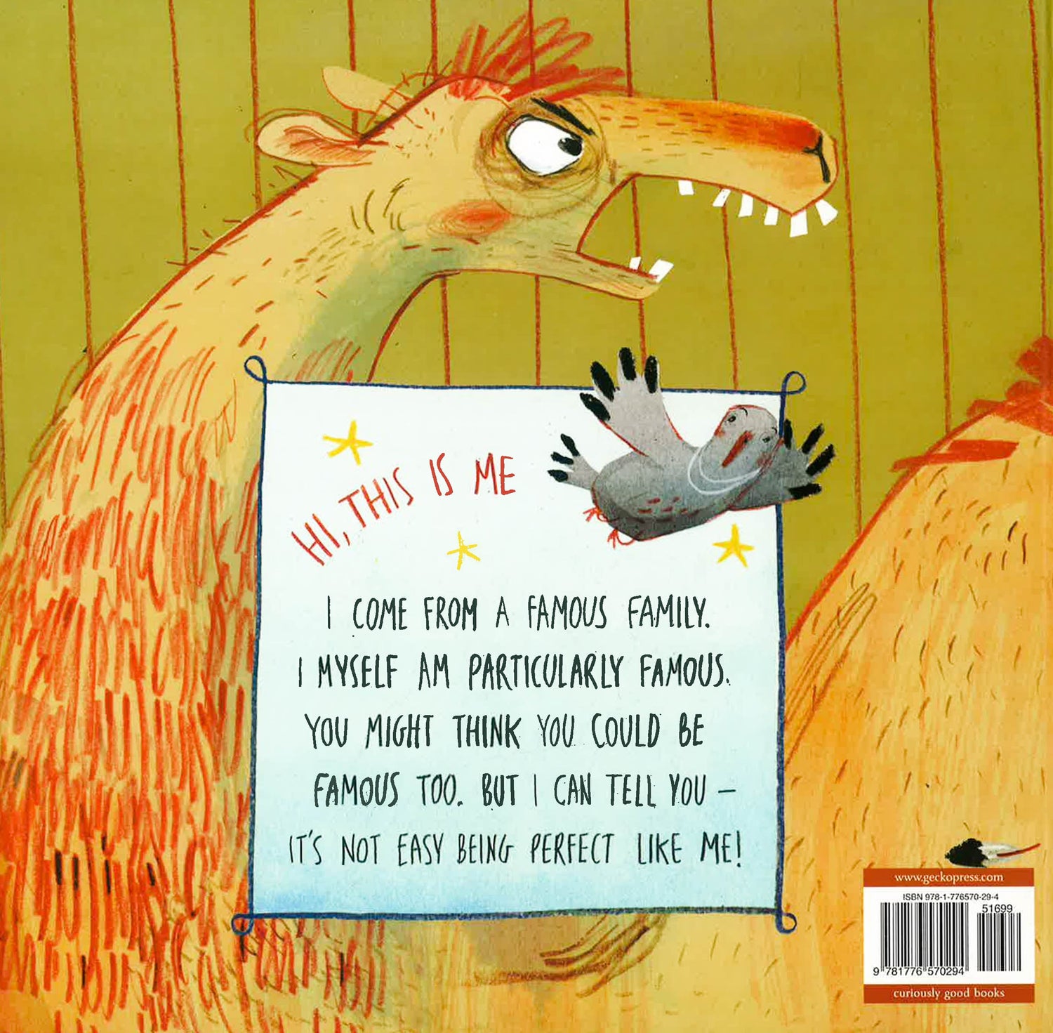 Hi, this is me! I come from a famous family. I myself am particularly famous. You might think you could be famous too. But I can tell you--it's not easy being perfect like me! Take a trip through the zoo with this irrepressible pigeon, as she preens and poses alongside all the animals, right up to the sharp teeth of a grumpy lion. An irreverent, layered story full of deadpan humor.