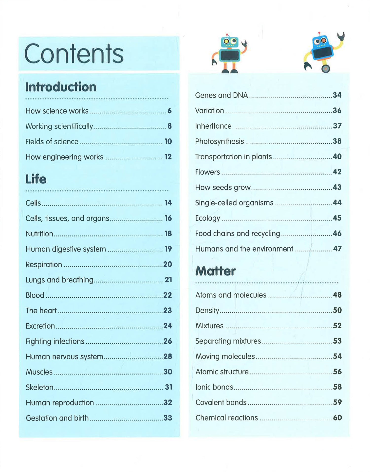 Perfect for children ages 11-14, this colorful science practice book covers all the key areas of the school curriculum for this level. It includes genes and DNA, molecules, chemical reactions, the periodic table, heat transfer, electricity and magnetism, seasons and climate zones, and lots more. And there are answers at the back to check that you're on the right path.