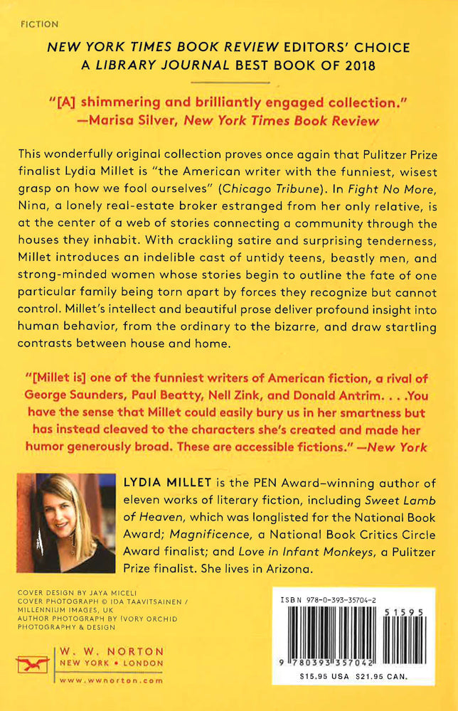 New York Times Book Review Editors' Pick A Library Journal Best Book of 2018 "Full of joys on every scale." -NPRThis wonderfully original collection proves once again that Pulitzer Prize finalist Lydia Millet is "the American writer with the funniest, wisest grasp on how we fool ourselves" (Chicago Tribune). In Fight No More, Nina, a lonely real-estate broker estranged from her only relative, is at the center of a web of stories connecting a community through the houses they inhabit. With crackling satire and surprising tenderness, Millet introduces an indelible cast of untidy teens, beastly men, and strong-minded women whose stories begin to outline the fate of one particular family being torn apart by forces they recognize but cannot control. Millet's intellect and beautiful prose deliver profound insight into human behavior, from the ordinary to the bizarre, and draws startling contrasts between house and home.