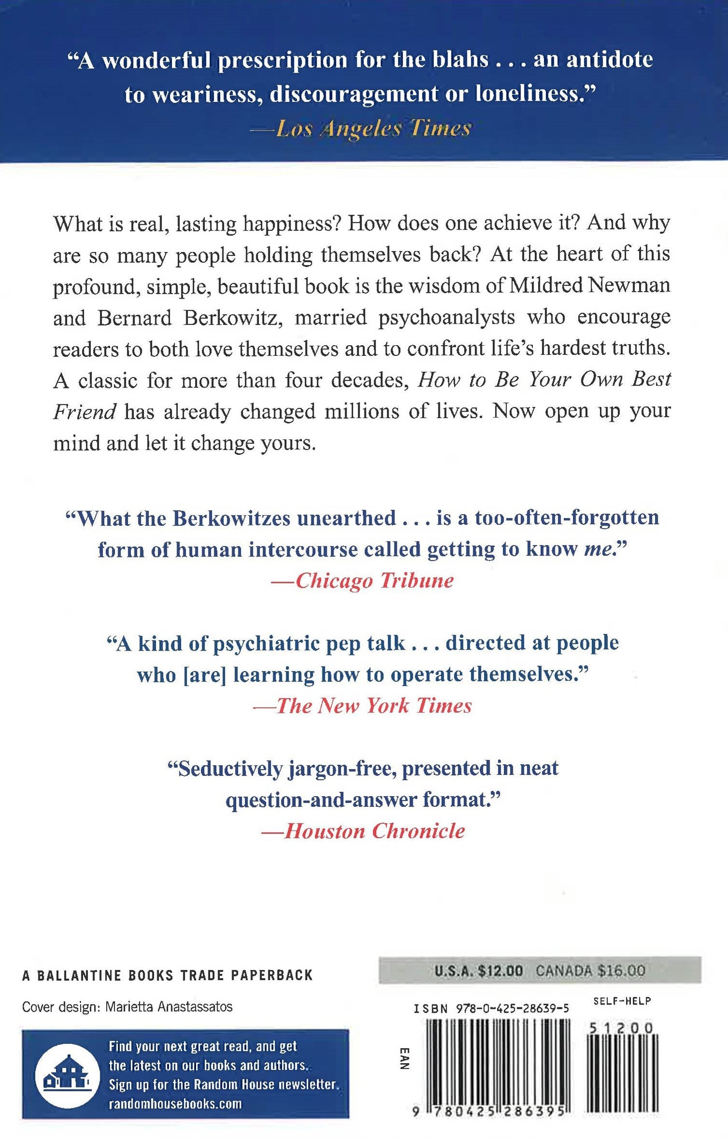 What is real, lasting happiness? How does one achieve it? And why are so many people holding themselves back? At the heart of this profound, simple, beautiful book is the wisdom of Mildred Newman and Bernard Berkowitz, married psychoanalysts who encourage readers to both love themselves and to confront life's hardest truths. A classic for more than three decades, How to Be Your Own Best Friend has already changed millions of lives. Now, open up your mind, and let it change yours.