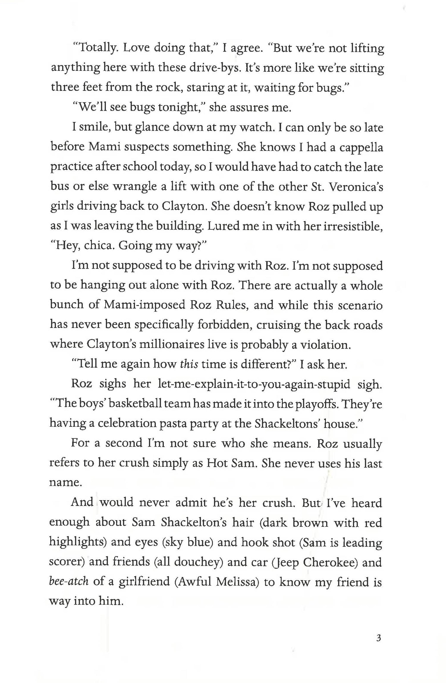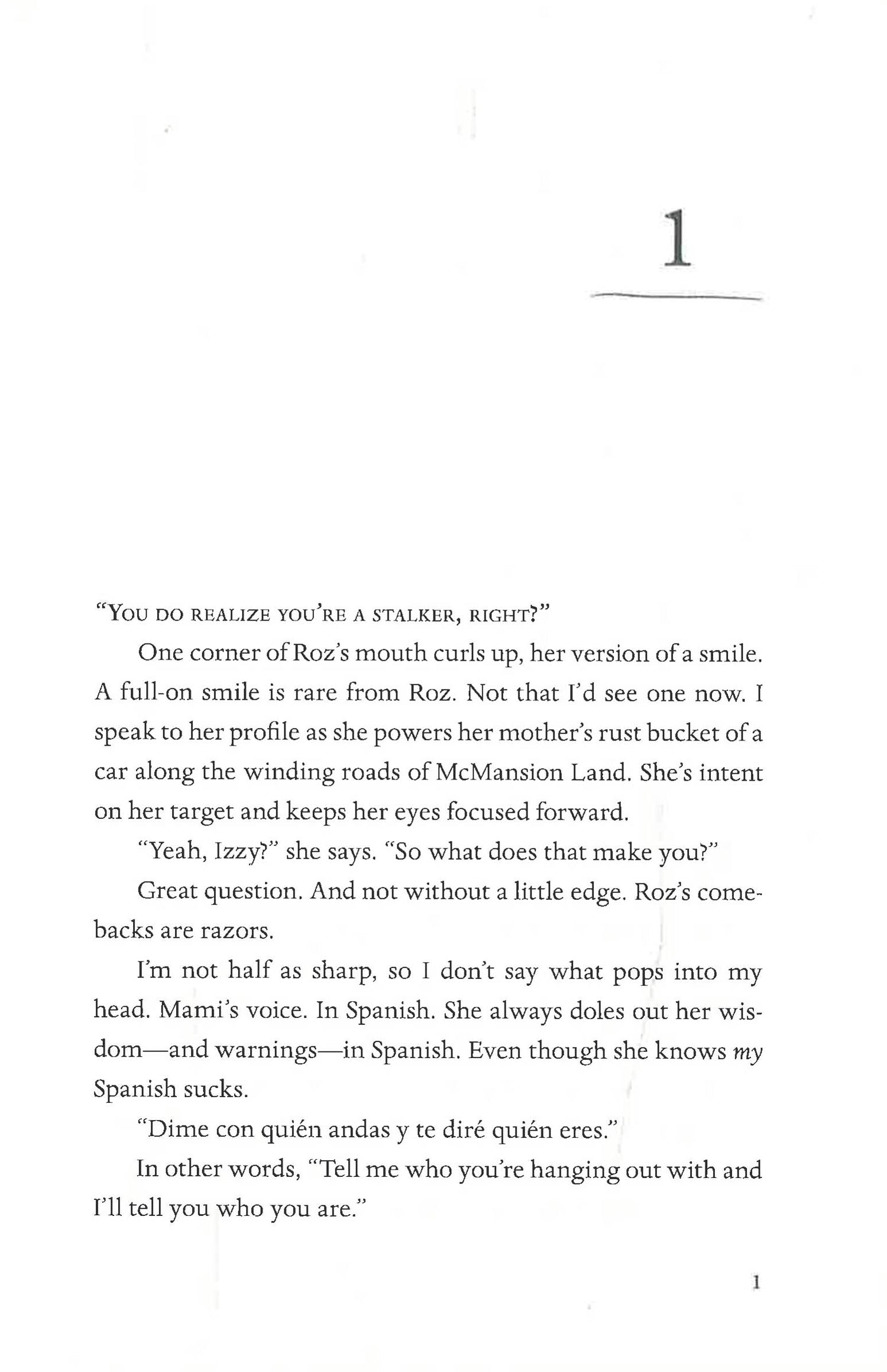 All sixteen-year-old Izzy Crawford wants is to feel like she really belongs somewhere. Her father, a marine, died in Iraq six years ago, and Izzy's moved to a new town nearly every year since, far from the help of her extended family in North Carolina and Puerto Rico. When Izzy's hardworking mom moves their small family to Virginia, all her dreams start clicking into place. She likes her new school--even if Izzy is careful to keep her scholarship-student status hidden from her well-to-do classmates and her new athletic and popular boyfriend. And best of all: Izzy's family has been selected by Habitat for Humanity to build and move into a brand-new house. Izzy is this close to the community and permanence she's been searching for, until all the secret pieces of her life begin to collide.