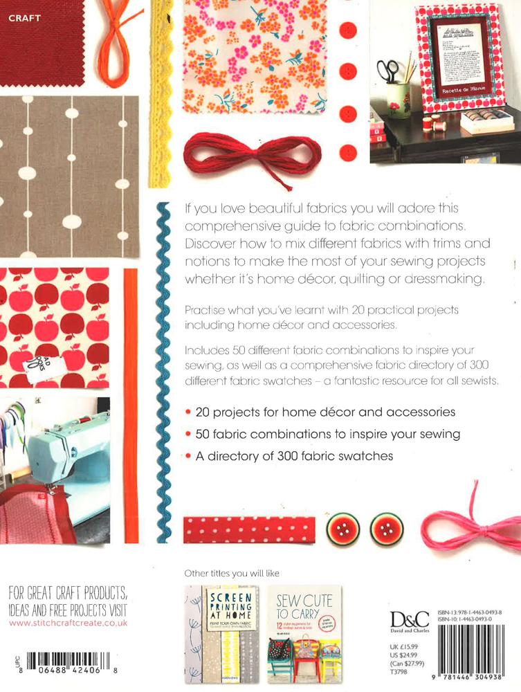If you love fabric you will love this comprehensive reference book for sewers, dressmakers and quilters. It includes practical ideas for which prints and colours work well together. It also suggests trims and notions which work well with particular fabric choices. Also includes practical project ideas to demonstrate these combinations on clothes and bags as well as interior projects, for example, curtains and bedding for a child's bedroom. OUTLINE * Intro * 50 fabric and trim combination ideas * 20 project ideas for home and to wear including curtains, bags, napkins and bedding * Index of over 300 different types of fabric, trims and notions * Templates for embroidery, cross stitch and appliques.