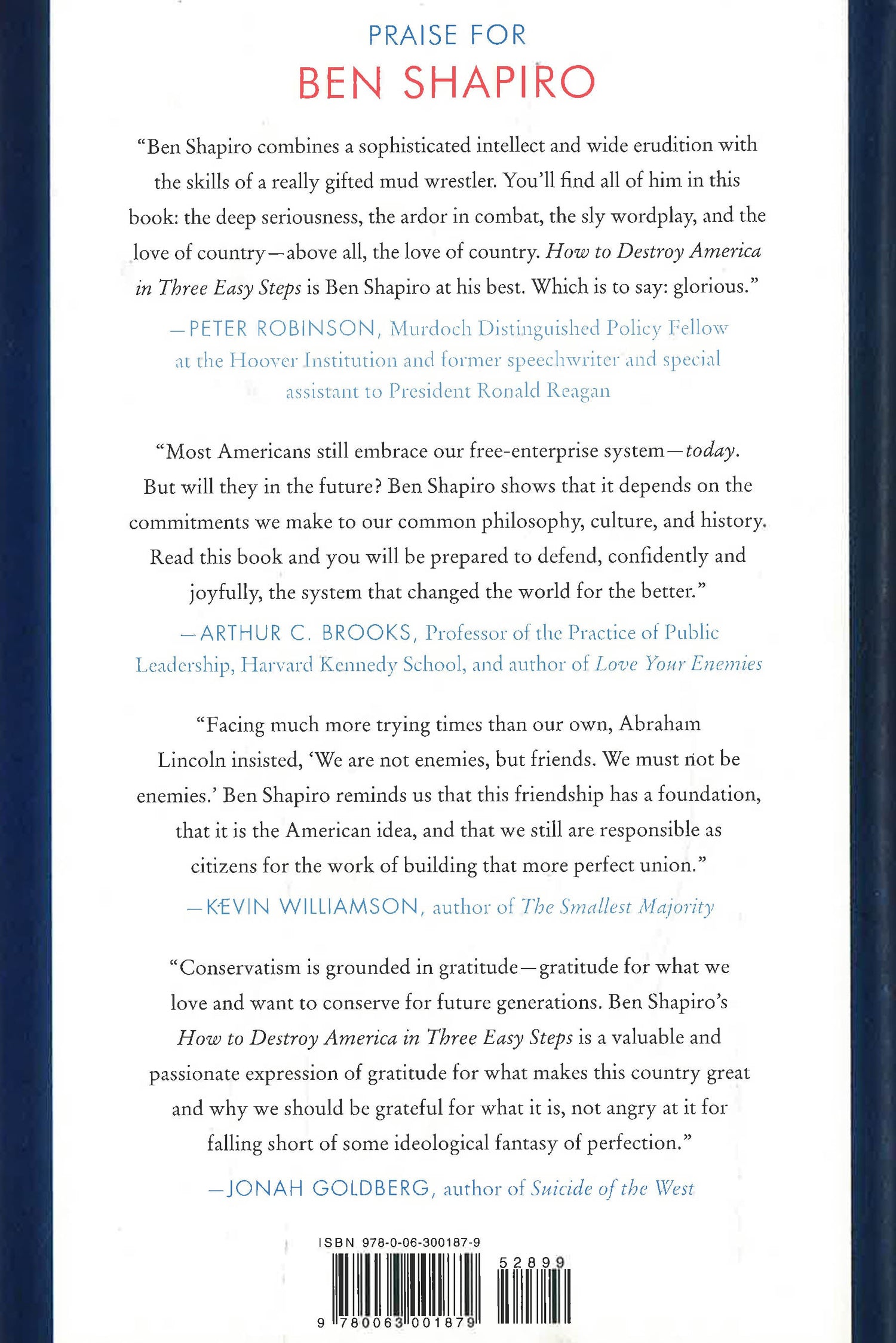 How to Destroy America in Three Easy Steps shows that to be a cohesive nation we have to uphold foundational truths about ourselves, our history, and reality itself—to be unionists instead of disintegrationists. Shapiro offers a vital warning that if we don’t recover these shared truths, our future—our union—as a great country is threatened with destruction.