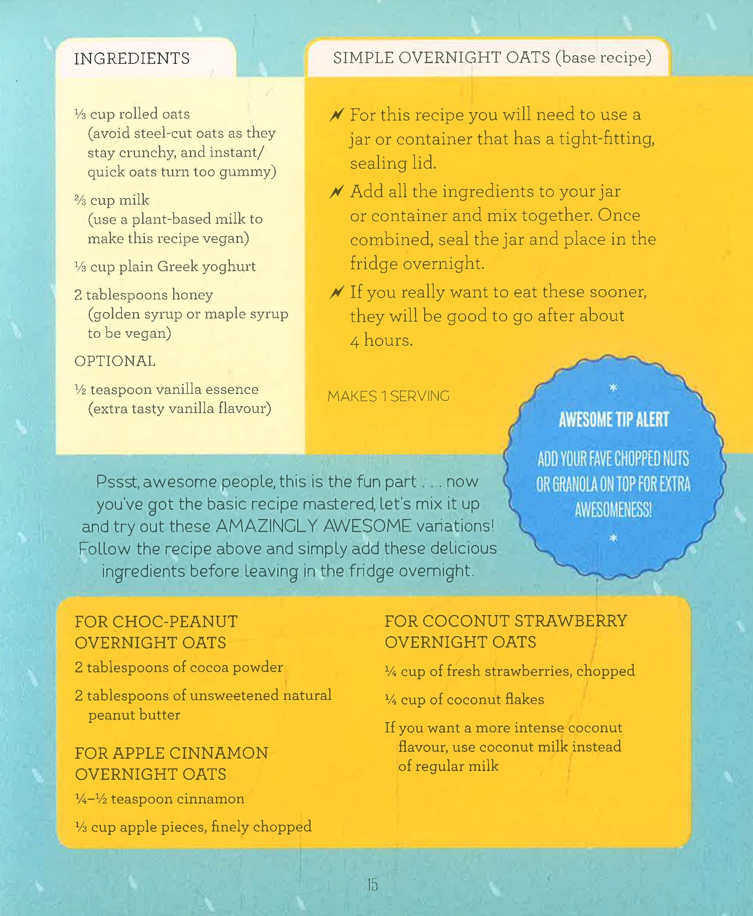 We are all awesome in our own way but sometimes we need a little pep talk, some inspiration and a nudge in the right direction. Find out how to turn daily challenges into awesome experiences that will cure your boredom and brighten your day. Jam-packed with journal pages, advice, D.I.Ys, recipes and all sorts of rad activities - How To Feel Awesome Every Day is your one-stop guide to good times.