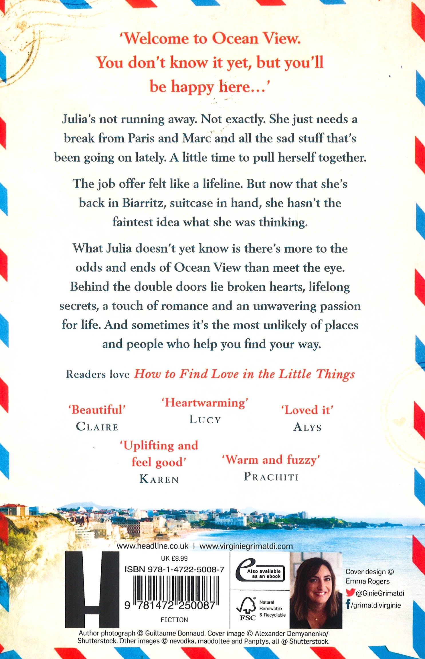 A funny, emotional and uplifting novel from the French Marian Keyes. A funny, emotional and uplifting novel from the French Marian Keyes. 'Heartwarming' Good Housekeeping'A gorgeous story, charming and funny and poignant' Nicola Cornick For fans of Ruth Hogan, Veronica Henry and Sarah Morgan, about unexpected friendships, starting again and finding your passion for life.'Welcome to Ocean View. You don't know it yet, but you'll be happy here...'Julia's not running away. Not exactly. She just needs a break from Paris and Marc and all the sad stuff that's been going on lately. A little time to pull herself together.The job offer felt like a lifeline. But now she's back in Biarritz, suitcase in hand, she hasn't the faintest idea what she was thinking. What Julia doesn't yet know is there's more to the odds and ends of Ocean View than meet the eye. Behind the double doors lie broken hearts, lifelong secrets, a touch of romance and an unwavering passion for life. And sometimes it's the most unlikely of places and people who help you find your way.What readers are saying about HOW TO FIND LOVE IN THE LITTLE THINGS:'Virginie Grimaldi will capture your heart' 'It's rare that a book can touch your heart, it made me laugh, it made me cry. I've bought extra copies as gifts''This is a book to just fall in love with''Left me feeling warm and good inside''Cheerful, heartwarming, and utterly uplifting''A perfect holiday read'