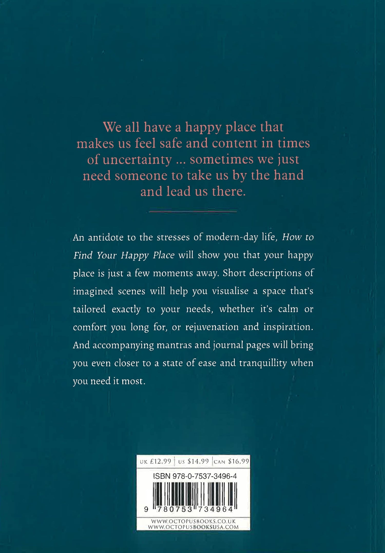 Move through descriptions of comforting places and inspiring mantras to locate the emotional space you need. Accompanying journal pages give you the space to describe inner landscapes you wish to revisit, record a memory that carries you into that emotion more quickly or to simply express your feelings. Whenever you need it, your happy place is there for you. On the days when it seems the furthest away, turn a page, and let the words lead you home.