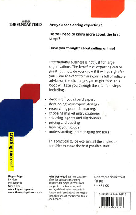 Exporting is not just for large organizations and multi-nationals. Research shows that companies that export are more productive than non exporters, perform better financially and are more likely to stay in business. Moving into export is a big decision and is not without its risks, but with the right approach and some good advice, the results can be enormously rewarding. How to Get Started in Export explores the challenges and opportunities of taking this next vital step for your business. From choosing the best markets for your products and making the most of the wide range of services available to working with agents and distibutors and the need to comply with regulations at home and abroad, this practical guide explains all the angles to consider and how to make the best possible start.