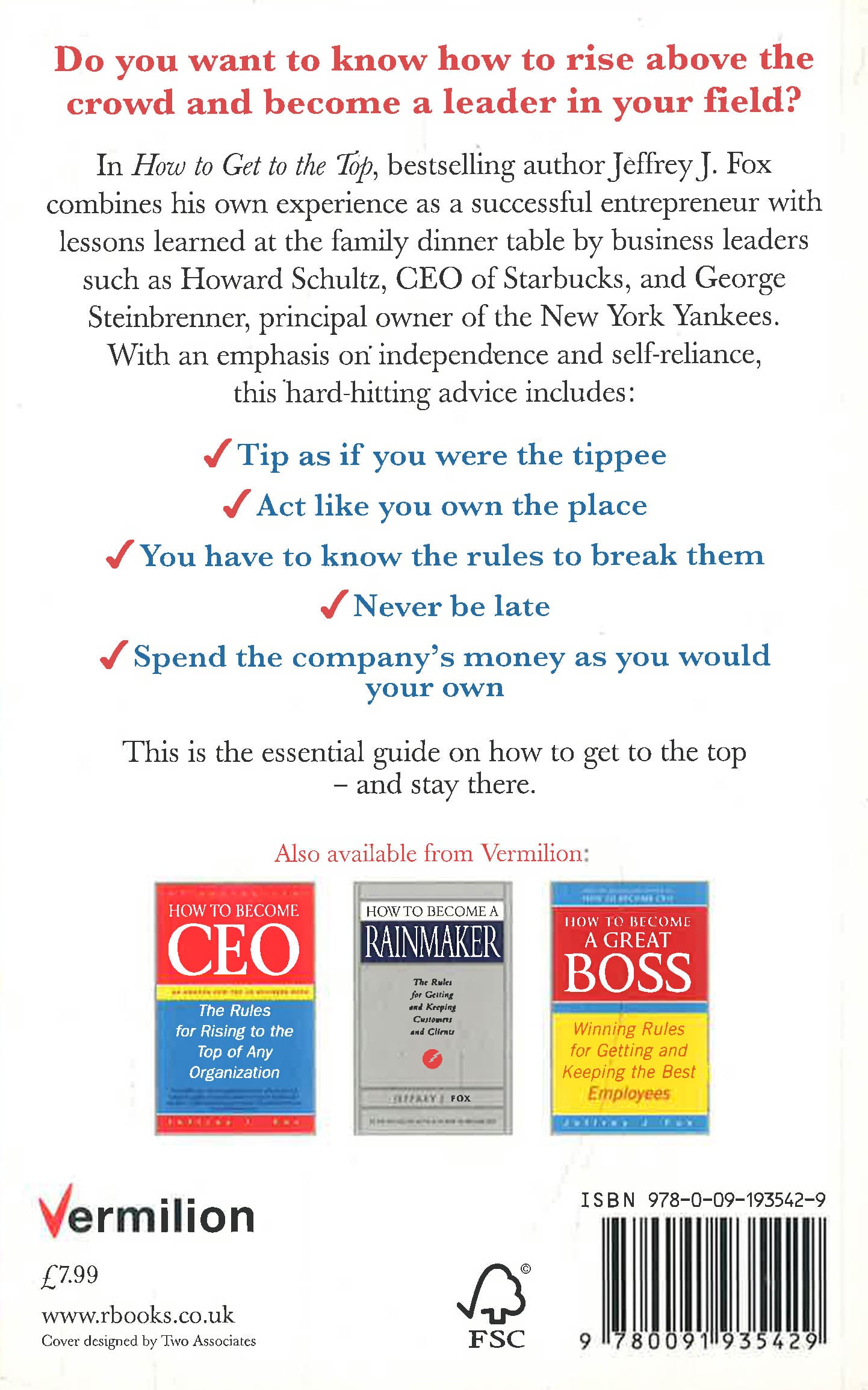In How to Get to the Top, bestselling author Jeffrey J Fox combines his own experience as an extremely successful entrepreneur with lessons learned at the family dinner table by business leaders such as Howard Schultz, CEO of Starbucks and George Steinbrenner, principal owner of the New York Yankees. This compelling book contains hard-hitting advice on independence and self-reliance, management dynamics and problem solving, including: