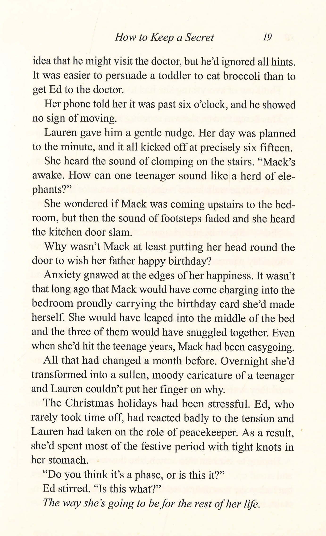 If you enjoyed How to Keep a Secret, don't miss Sarah Morgan's wonderful new summer read, Family for Beginners! * * * * Your fav authors love Sarah Morgan! 'Joyful, uplifting and overflowing with love' Cathy Bramley'Comfort reading at its best' Veronica Henry 'A master storyteller' Laura Jane Williams'I loved every sparkly, big-hearted, warm-hug moment' Miranda Dickinson'Full of warmth, humour and heart' Katie Marsh * * * * This summer one family will discover that together, they can do anything. Matriarch Nancy knows she hasn't been the best mother but how can she ever tell her daughters the reason why? Lauren and Jenna are as close as two sisters can be and they made a pact years ago to keep a devastating secret from their mother - but is it time to come clean? Lauren's teenage daughter Mackenzie masks her own pain by keeping her mother at a distance. Her mother, aunt and grandmother keep trying to reach her but will it take a stranger to show her the true meaning of family? When life changes in an instant, the Stewart women are thrown together for a summer and suddenly they must relearn how to be a family. And whilst unravelling their secrets might be their biggest challenge, it could also be their finest moment . . . * * * * Praise for How to Keep a Secret: 'Heart-warming, emotional, funny and real - I adored this book! Jill Shalvis 'A warm, wonderful rich story told with care and skill that broke my heart and then put it back together again' Alex Brown 'A delightful escape' Woman & Home
