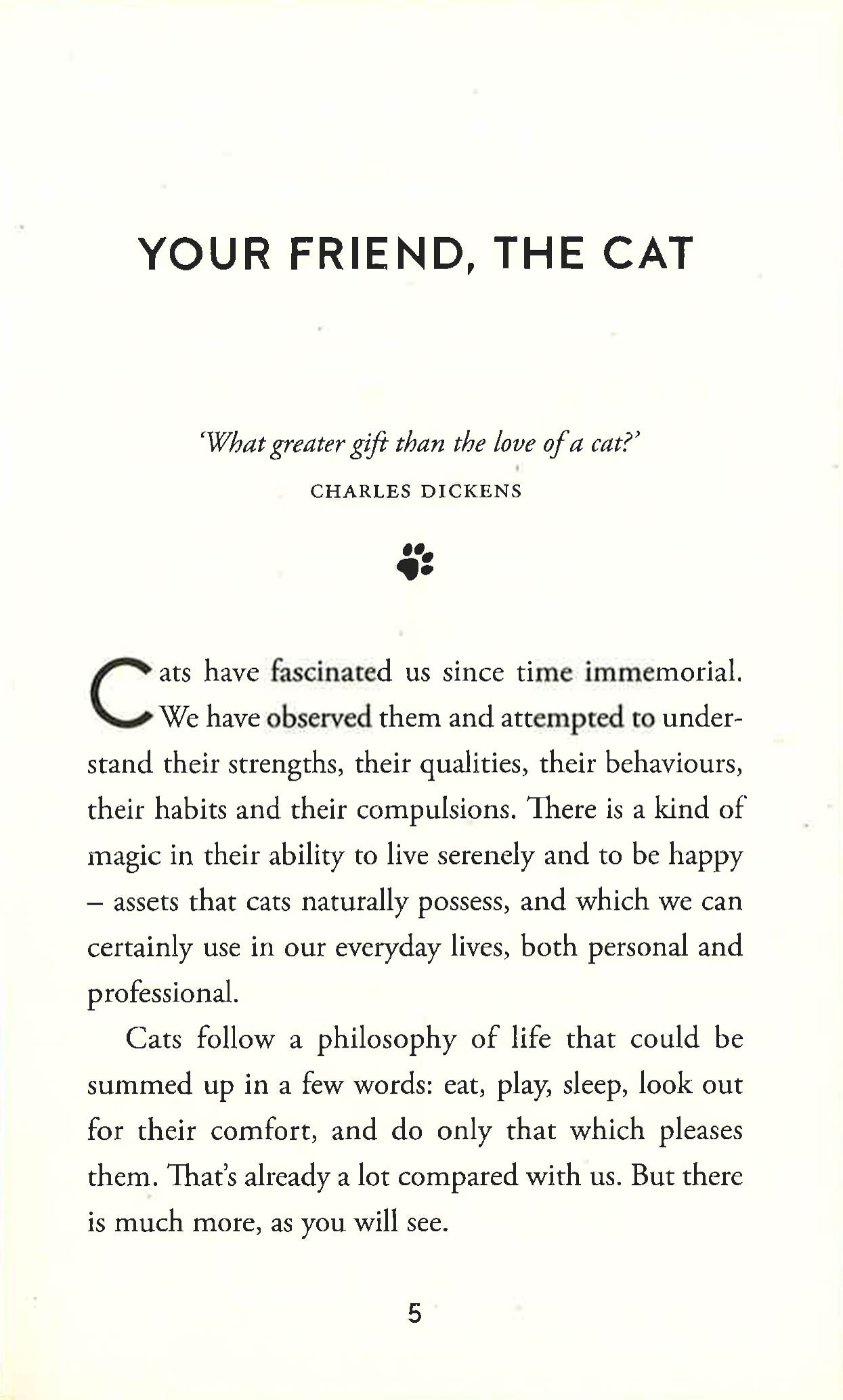 Cats are free. They are calm, observant, wise, elegant, charismatic and proud. In fact, cats have found nothing less than the secret of how we should all live, whatever species we are! And in this book, Stephane Garnier will show you what he's learned over fifteen years of closely observing his cat, and teach you all the ways in which you too can apply the secrets of cats to your own life - at work, at home and with your friends.