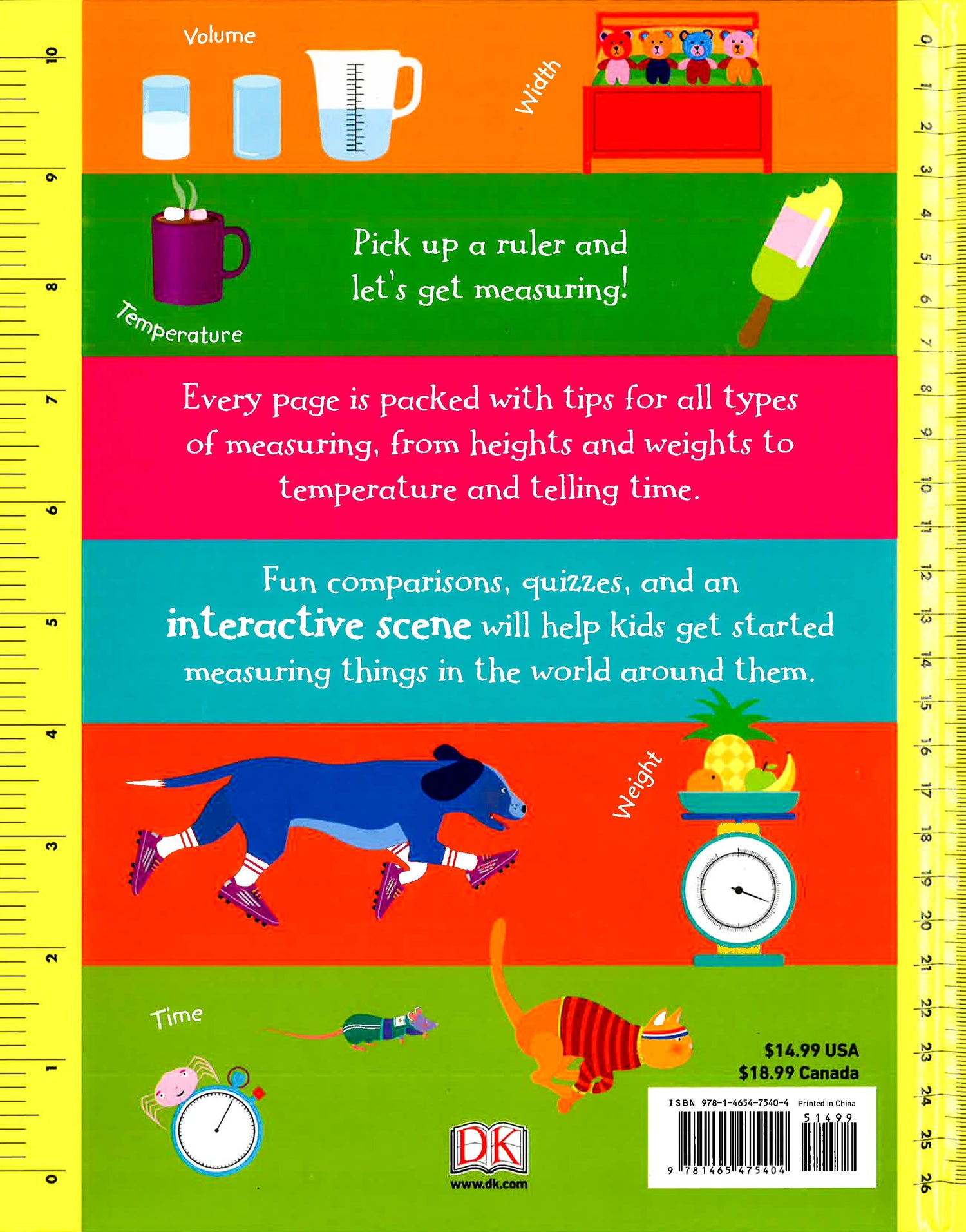 Packed with math puzzles and quizzes, this bold and bright book tackles the basic concepts of measuring, from measuring length to telling the time. It helps kids understand the language and math of measuring, while having lots of math fun! Measuring is a key math topic for early learners. This book helps children to relate measuring to everyday life and combines fun comparisons and measurement quizzes with clear, easy-to-read text. Topics include length, weight, volume, temperature, and time. Fun animal size comparison charts are included, and the colorful scene at the end comes complete with a fun quiz. How to Measure Everything engages kids with a key math topic in a new, interactive, and playful way.