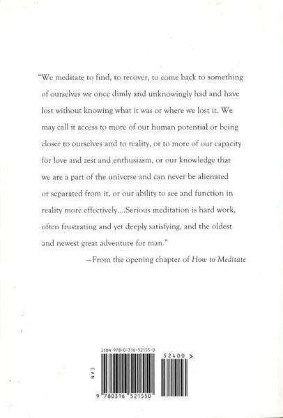 Since its initial publication nearly 50 years ago, this simple yet powerful guide has helped more than a million readers reap the profound and limitless rewards of meditation. Now, in a special new edition, How to Meditate is back, singing the virtues of a quiet mind in the overstimulating bustle of the modern world. Outlining a realistic and no-nonsense approach that will enable you to bring meditation effortlessly into your life, no matter how thinly stretched you are, How to Meditate is unrivaled as a source of inspiration and practical instruction for anyone seeking inner peace, relief from stress, and increased self-knowledge.