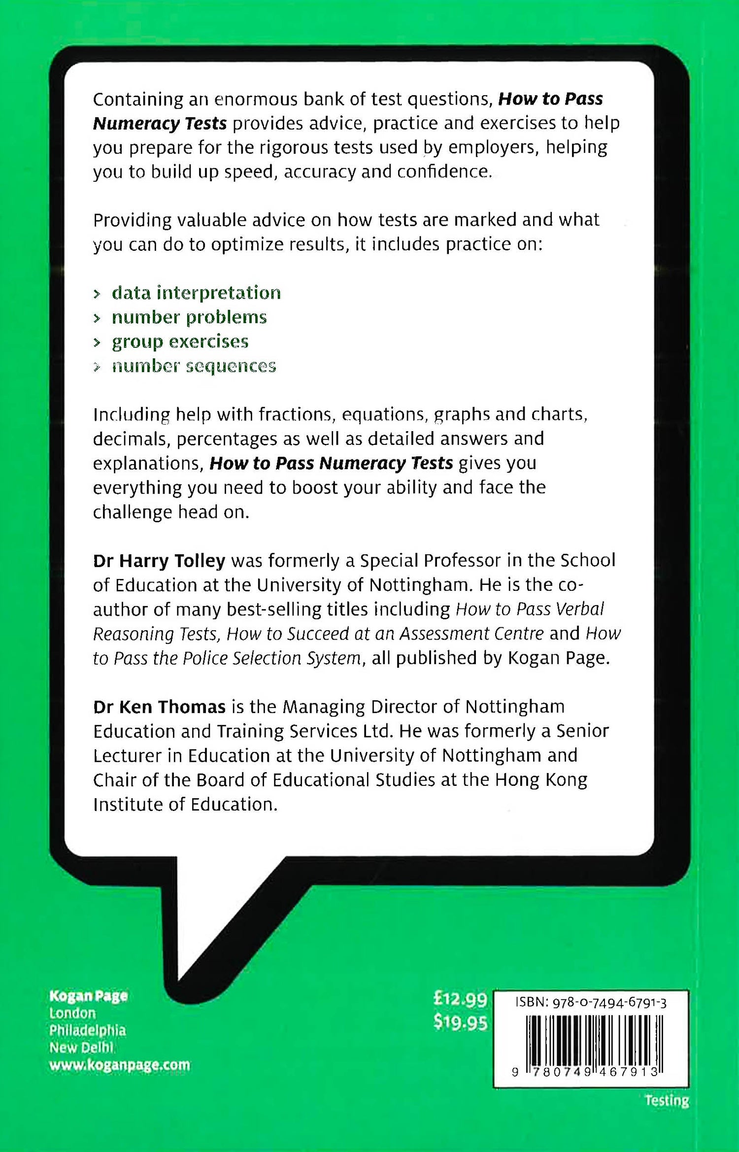 How to Pass Numeracy Tests covers a huge variety of practice questions to provide essential practice for numeracy recruitment tests. How to Pass Numeracy Tests will help you practice for timed tests, revise your maths and numeracy knowledge and improve your test technique. Providing over 350 practice questions it also gives vital advice on how the tests are marked and what you can do to optimise results. The wide variety of practice includes 20 timed tests on data interpretation, number sequences and number problems, covering percentages, averages, currency, decimals, whole numbers, multiplication and division as well as adding and substracting. With mental arithmetic starter exercises and a host of preparation techniques, How to Pass Numeracy Tests will help increase your confidence and beat the competition.