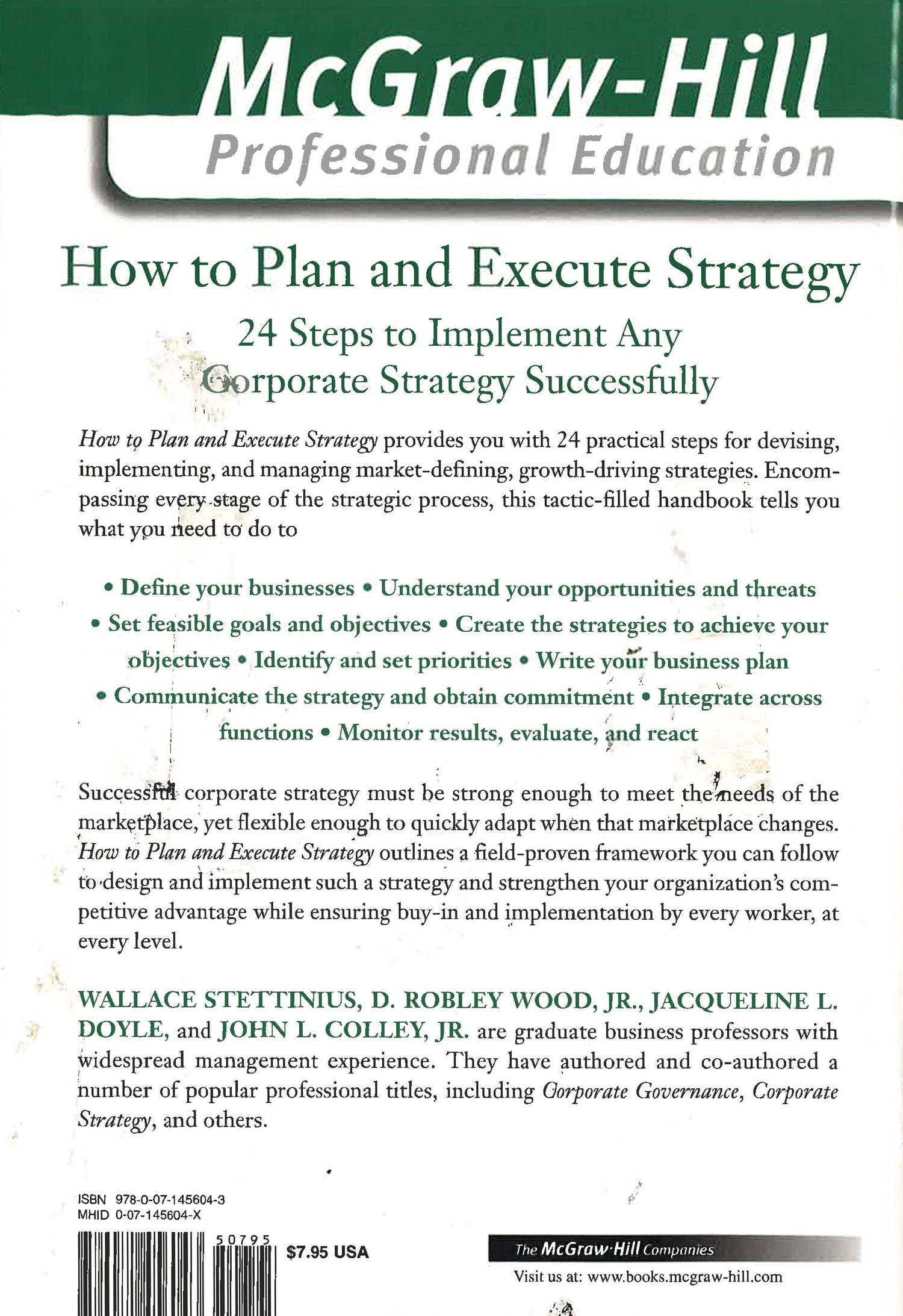 Walks professionals through 24 essential steps for creating and executing sound, profit-driven corporate strategy, understanding strategic options, implementing plans and measuring performance.