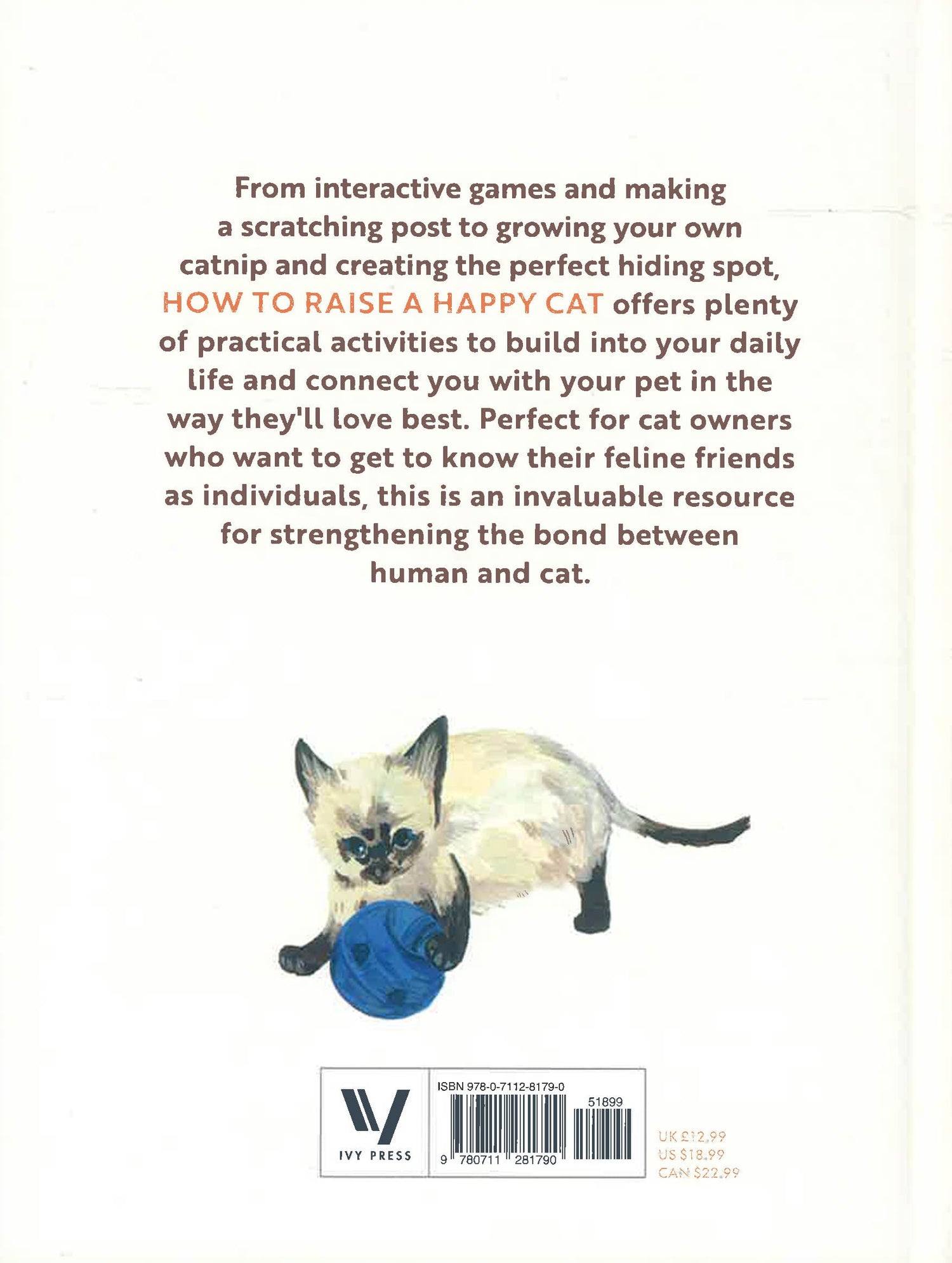 How to Raise a Happy Cat focuses on the happiness to be found in the person/pet relationship and includes dozens of ideas for activities and hacks you can build into daily life with your pet, from spontaneous play and activities to making them the perfect sleep spot.