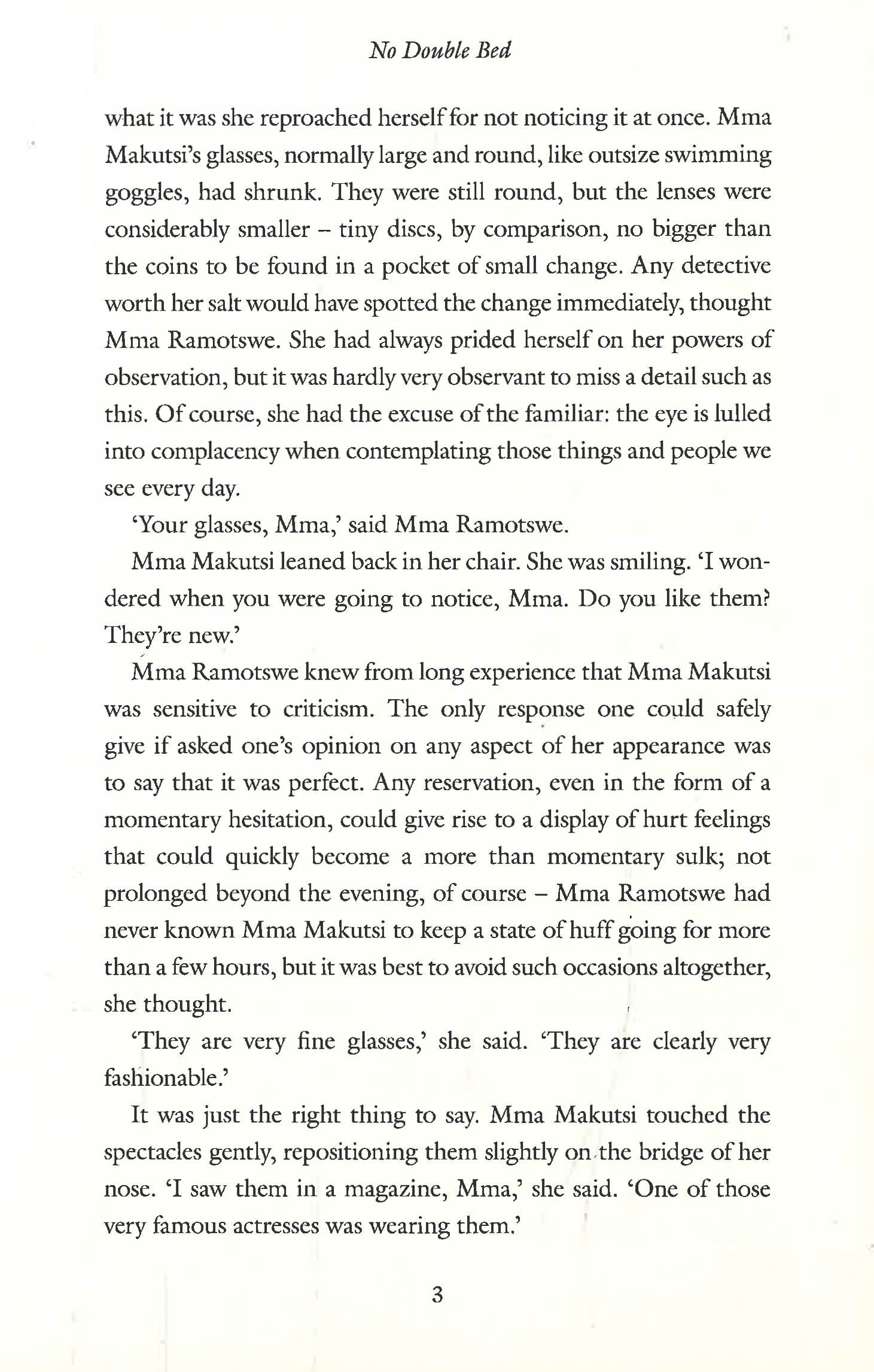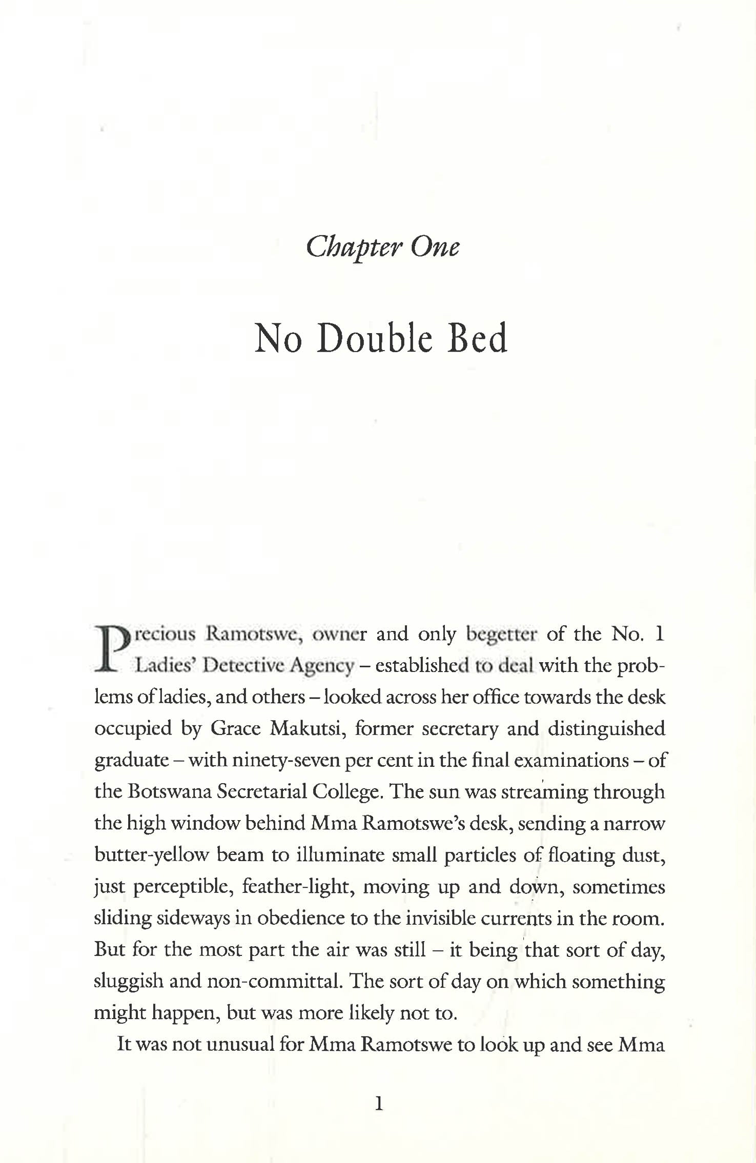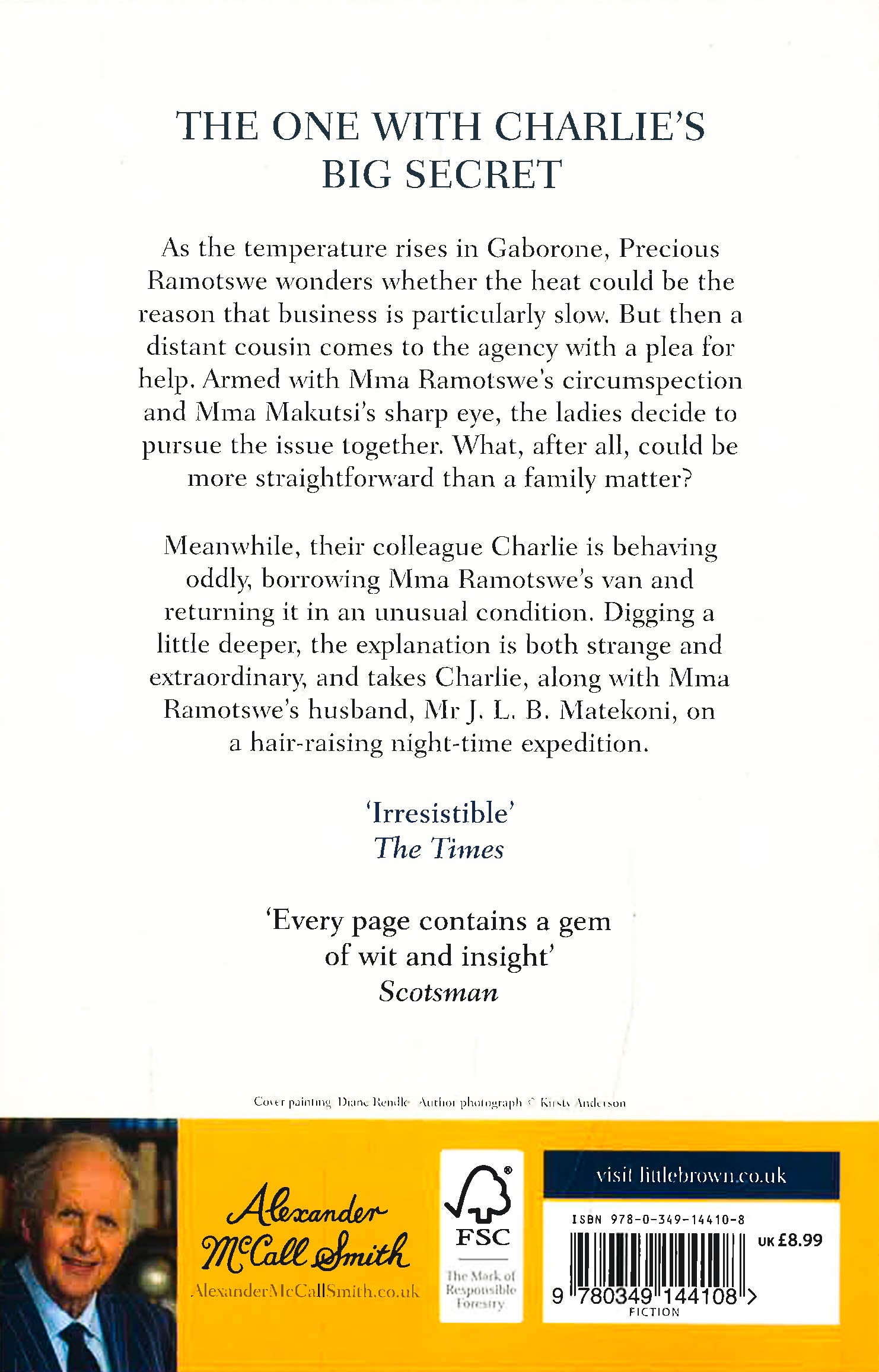 As the temperature rises in Gaborone, Precious Ramotswe, founder of the No. 1 Ladies' Detective Agency, wonders whether the heat could be the reason that business is particularly slow. Luckily, a slower pace in life is her natural preference, unlike her colleague Mma Makutsi, who is alert to every passing observation and inclined to making snap decisions. With fewer cases to handle, Precious has time to contemplate her new neighbours, a couple who, by the sounds of it, have a rather volatile relationship . . .