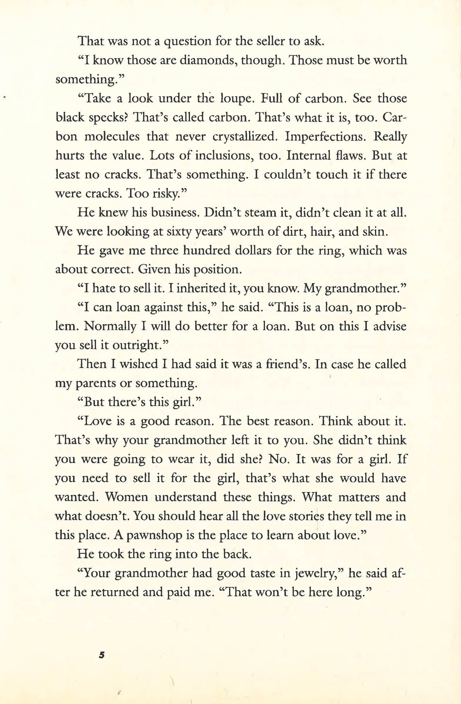 Bobby Clark is just sixteen when he drops out of school to follow his big brother, Jim, into the jewelry business. Bobby idolizes Jim and is in awe of Jim?s girlfriend, Lisa, the best saleswoman at the Fort Worth Deluxe Diamond Exchange. What follows is the story of a young man?s education in two of the oldest human passions, love and money. Skilled at the art of persuasion, Bobby is drawn to Lisa, but also to the myriad scams and frauds of the jewelry trade, where the power to appraise also means the power to bait and switch and cheat like hell. Clancy Martin's gripping debut novel takes us behind the counter, where diamonds and watches aren't the only precious commodity.