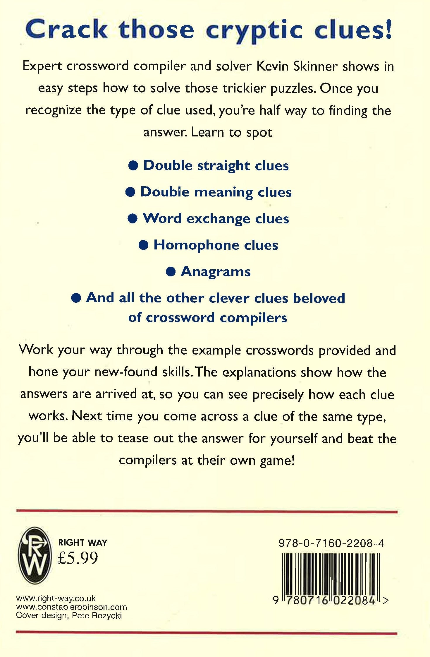 Expert crossword compiler and solver Kevin Skinner shows in easy steps how to solve those trickier puzzles. Once you recognize the type of clue used, you're half way to finding the answer. Learn to spot: * Double straight clues * Double meaning clues * Word exchange clues * Homophone clues * Anagrams * And all the other clever clues beloved of crossword compilers Work your way through the example crosswords provided and hone your new-found skills. The explanations show how the answers are arrived at, so you can see precisely how each clue works. Next time you come across a clue of the same type, you'll be able to tease out the answer for yourself and beat the compiler at their own game!