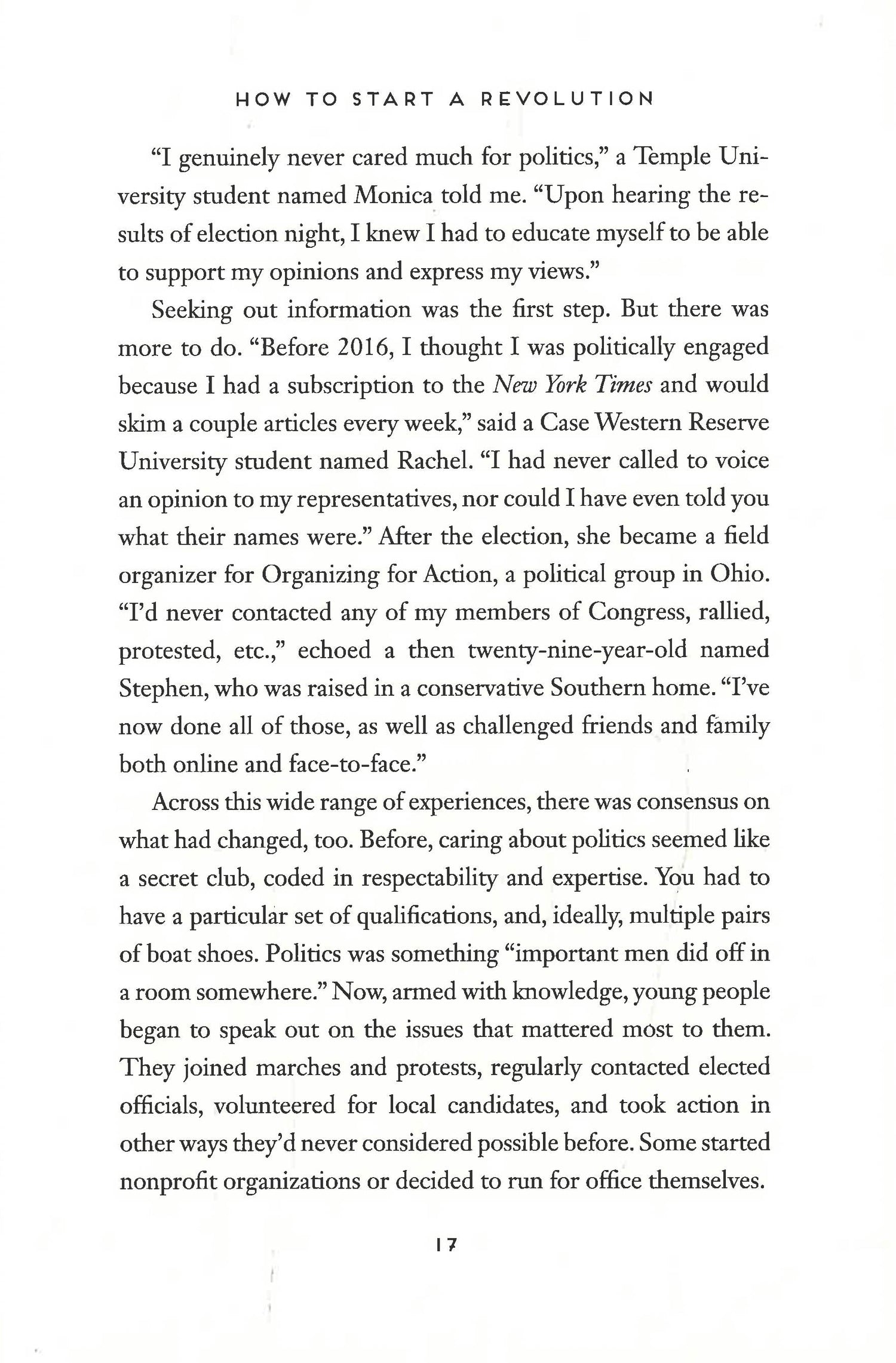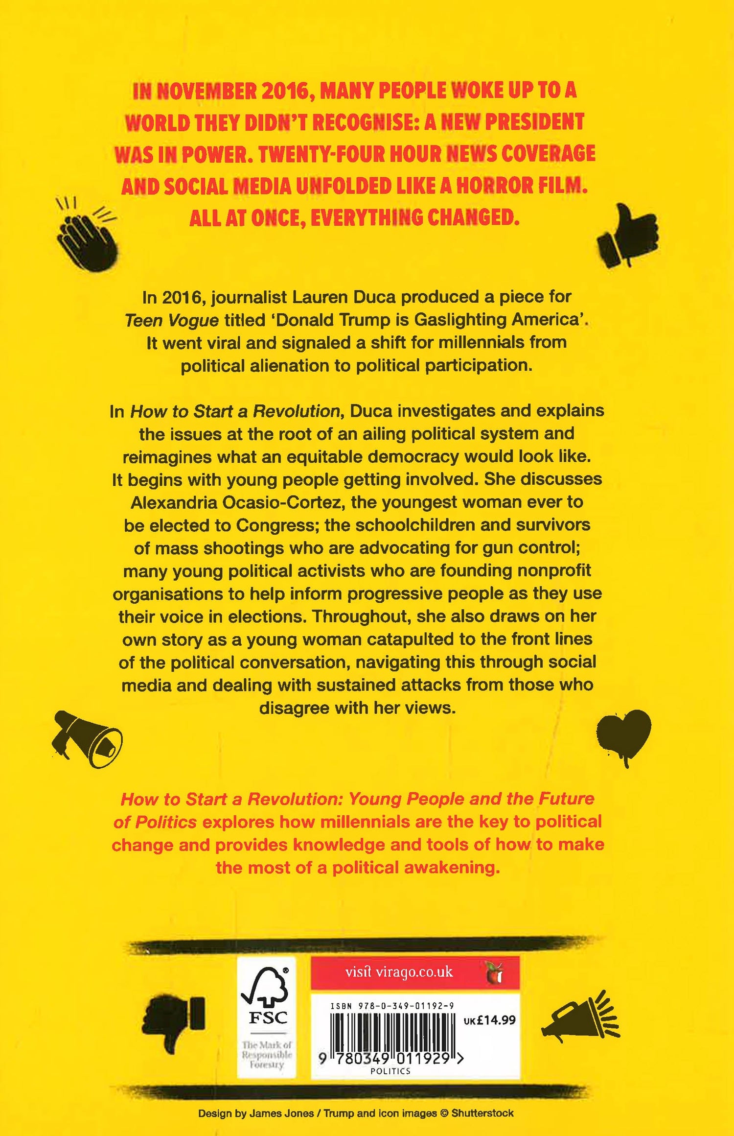 IN NOVEMBER 2016, MANY PEOPLE WOKE UP TO A WORLD THEY DIDN'T RECOGNIZE: A NEW PRESIDENT WAS IN POWER. TWENTY-FOUR HOUR NEWS COVERAGE AND SOCIAL MEDIA UNFOLDED LIKE A HORROR FILM. ALL AT ONCE, EVERYTHING CHANGED.In 2016, Journalist Lauren Duca produced a piece for Teen Vogue titled Donald Trump is Gaslighting America. It went viral and signaled a shift for millennials from political alienation to political participation. In How to Start a Revolution, Duca investigates and explains the issues at the root of an ailing political system and reimagines what an equitable democracy would look like. It begins with young people getting involved. She discusses Alexandria Ocasio-Cortez, the youngest woman ever to be elected to Congress; the schoolchildren and survivors of mass shootings who are advocating for gun control; many young political activists who are founding nonprofit organizations to help inform progressive people as they use their voice in elections. Throughout, she also draws on her own story as a young woman catapulted to the front lines of the political conversation, navigating this through social media and dealing with sustained attacks from those who disagree with her views.How to Start a Revolution: Young People and the Future of Politics explores how millennials are the key to political change and provides knowledge and tools of how to make the most of a political awakening.