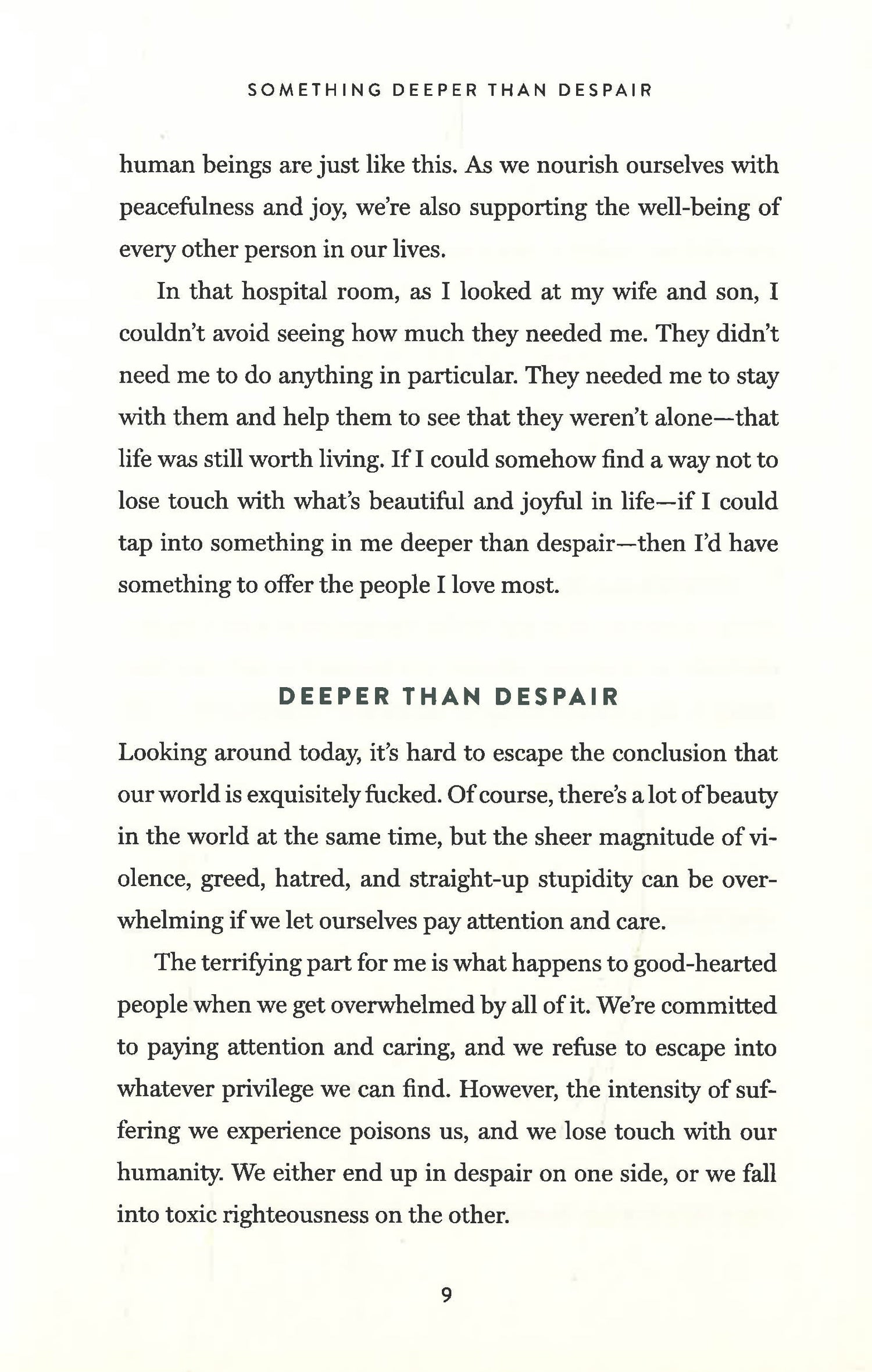 HOW CAN WE BE MORE MINDFUL WHEN THE WORLD IS THIS F*CKED UP? Tim Desmond--an esteemed Buddhist philosopher who has lectured on psychology at Yale and leads a mental health project at Google--offers a path to self-growth, connection, and joy like we've never seen before. Despite an absent father, childhood homelessness, and losing a wife to cancer, Desmond has emerged with not only inner strength and joyful resilience, but also a deep understanding of human suffering necessary to advocate for those hurting all over the world. Through his work, Desmond realized the truth: we don't need a mindfulness practice for productivity or sleep, and it shouldn't come from religion, philosophy, or hypothetical situations. Instead, mindfulness should be rooted in the pain, sadness, loneliness, and trauma of the here and now, because it is the only true antidote for this sometimes-miserable world we call home.