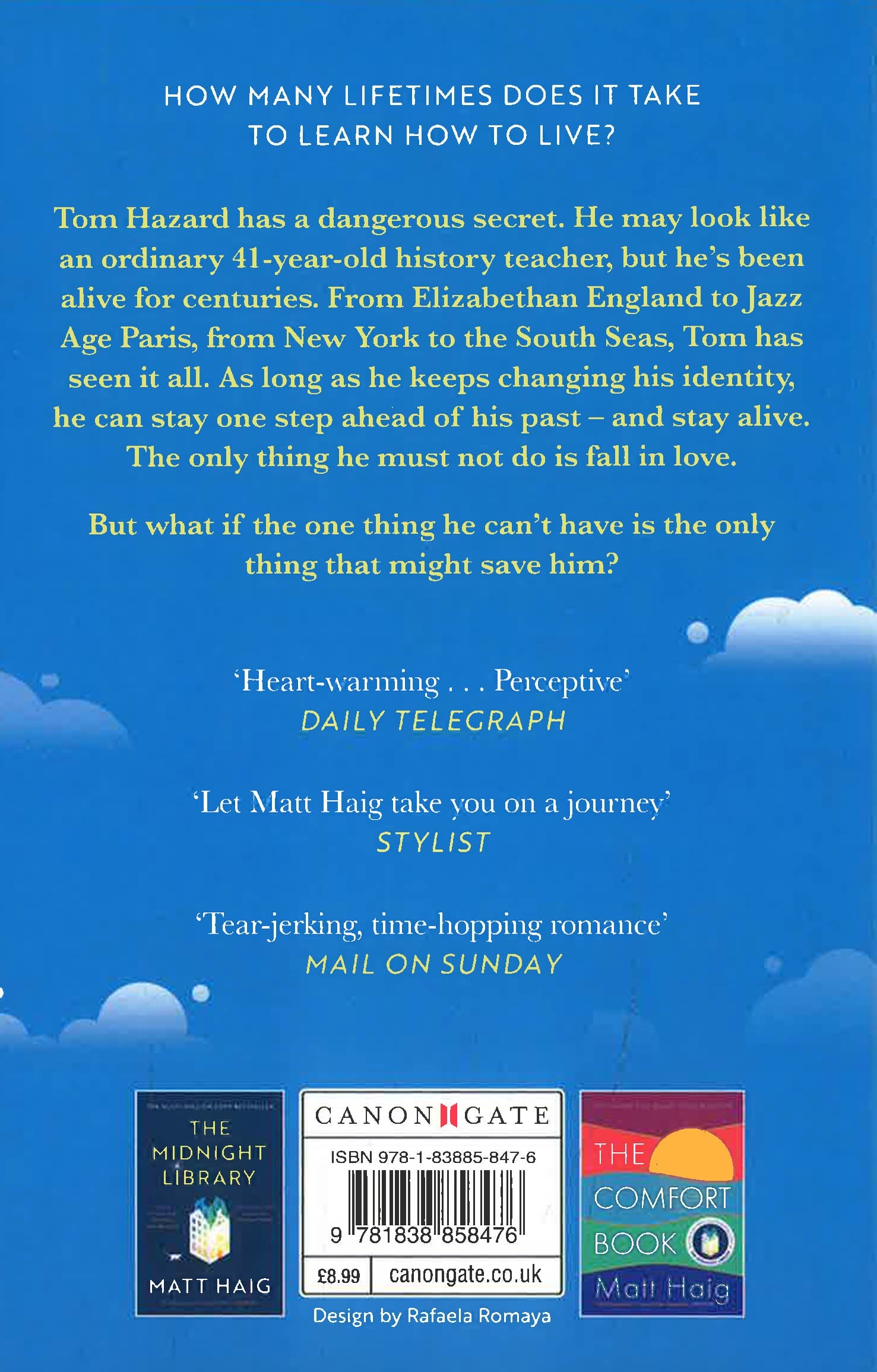 Tom Hazard has a dangerous secret. He may look like an ordinary 41-year-old history teacher, but he's been alive for centuries. From Elizabethan England to Jazz-Age Paris, from New York to the South Seas, Tom has seen it all. As long as he keeps changing his identity, he can stay one step ahead of his past - and stay alive. The only thing he must not do is fall in love.